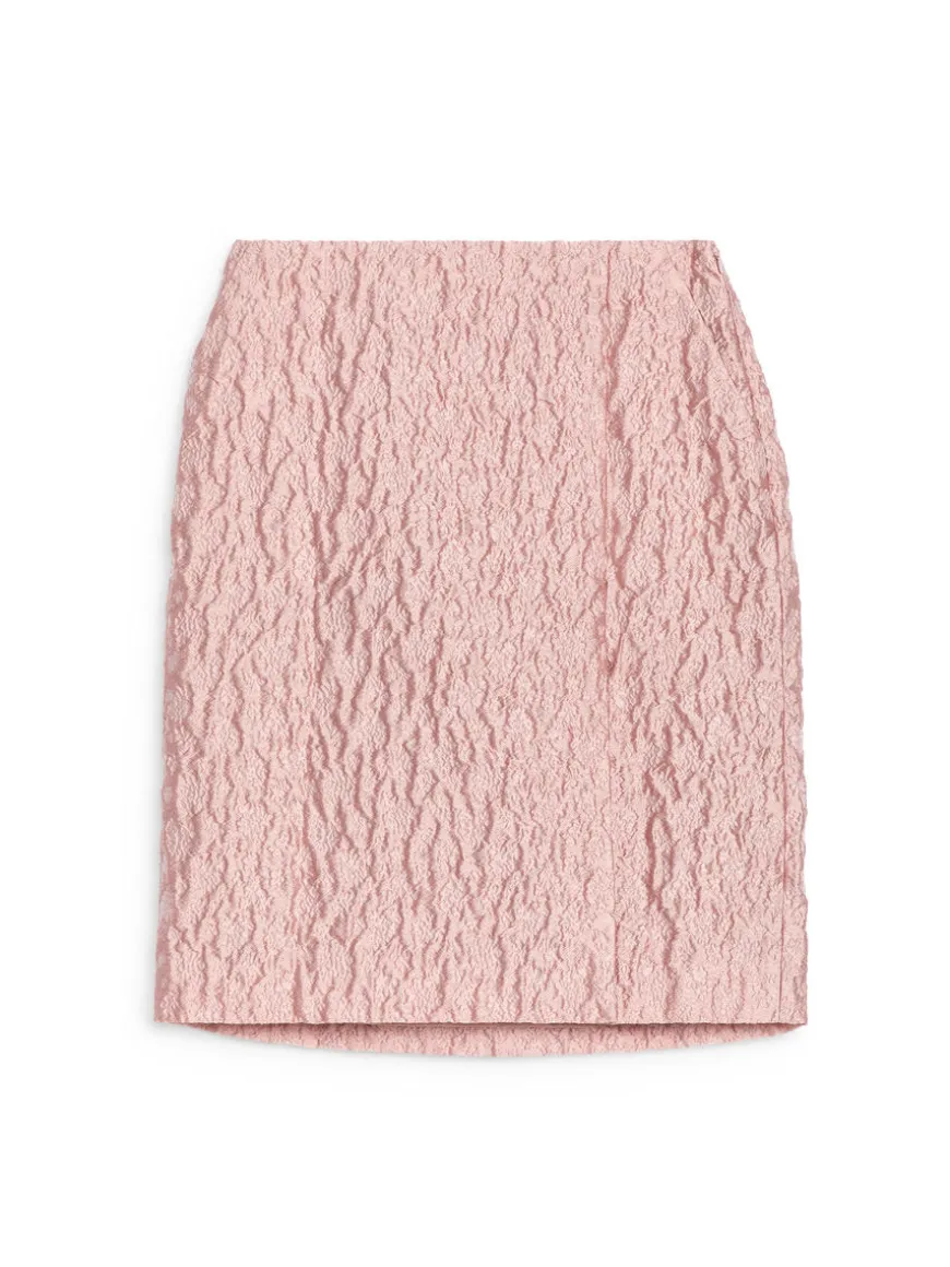 Skirt in a brocade weave with front slit, side pockets and hidden zip at the side. Regular fit.
