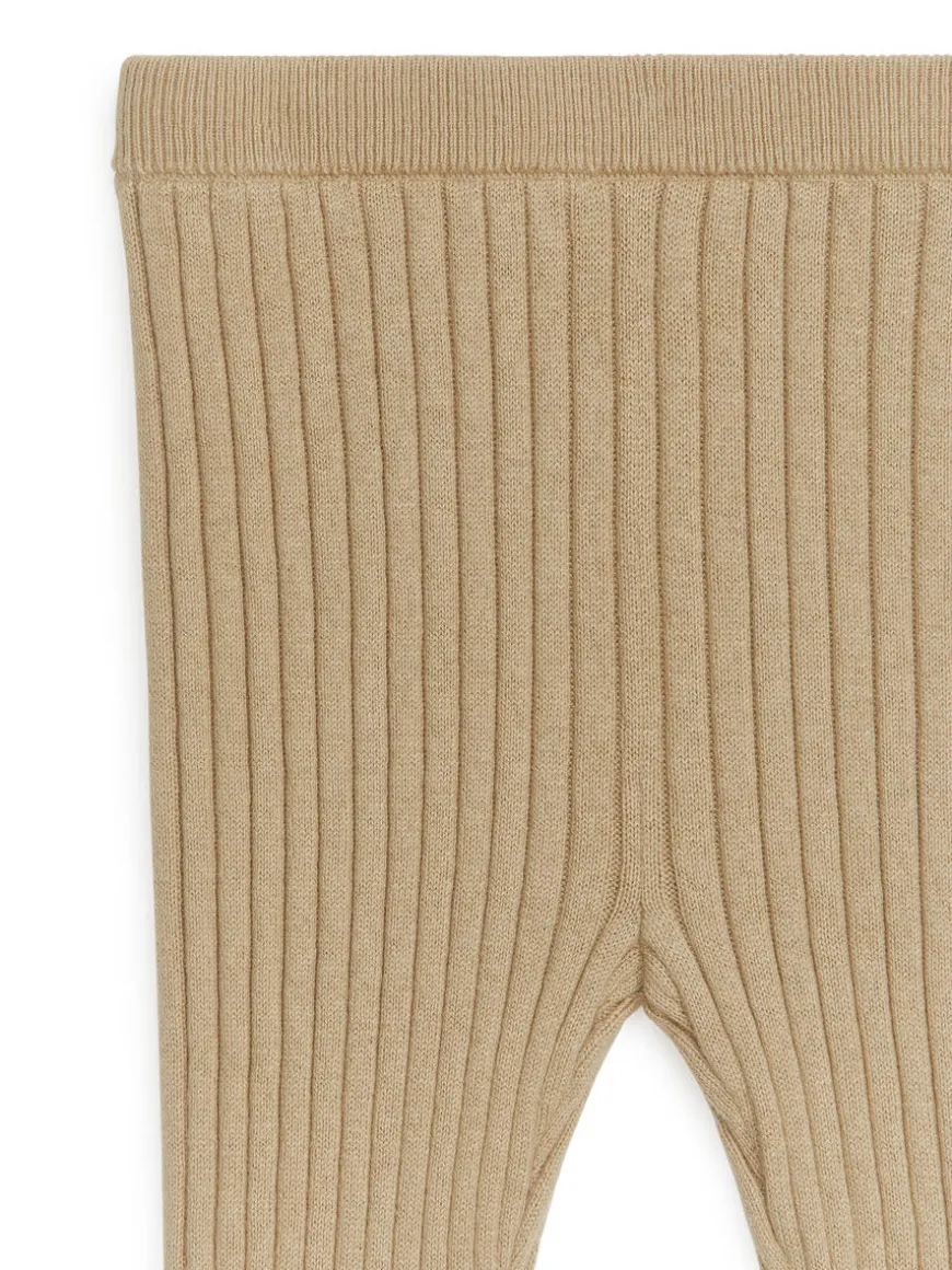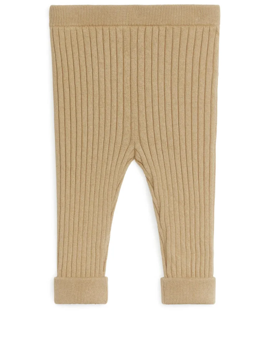 Fine-knit leggings featuring a rib texture. Crafted from a super soft blend of cotton and wool. Detailed with an elasticated waist and fold-up cuffs at bottom legs. The leggings contain 5% RWS wool, certified by control union 815571. Products certified to the Responsible Wool Standard (RWS) contain wool fiber from farms independently certified to animal welfare and land management requirements.
