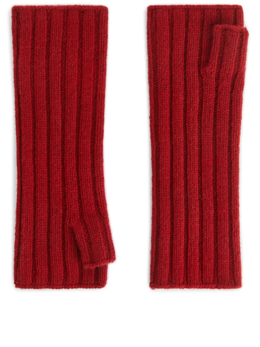 Rib-knitted fingerless gloves made from wool. Total length 23 cm. These gloves contain 100% RWS wool (TE-00047206). Products certified to the Responsible Wool Standard (RWS) contain wool fiber from farms independently certified to animal welfare and land management requirements.