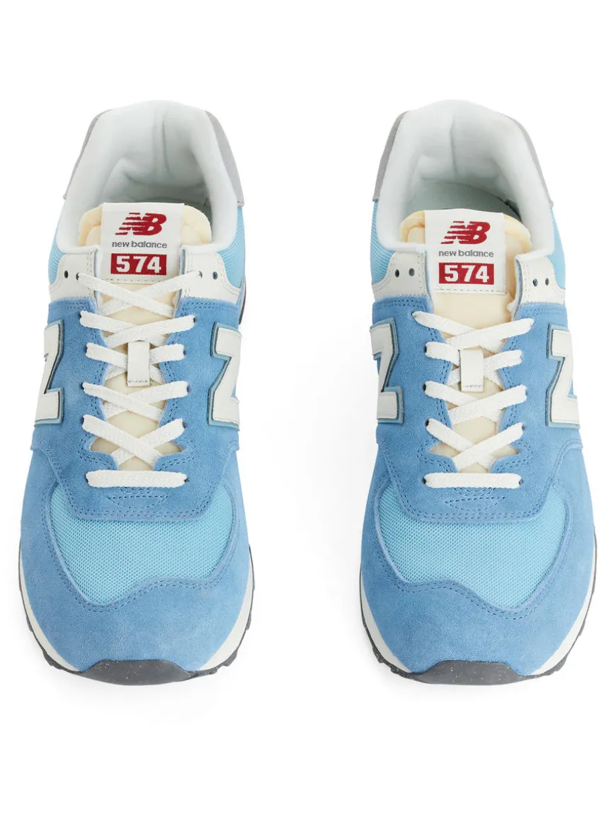 574 from New Balance features a retro design with an upper made of suede and mesh. Detailed with lightweight EVA foam cushioning in the midsole and heel.
