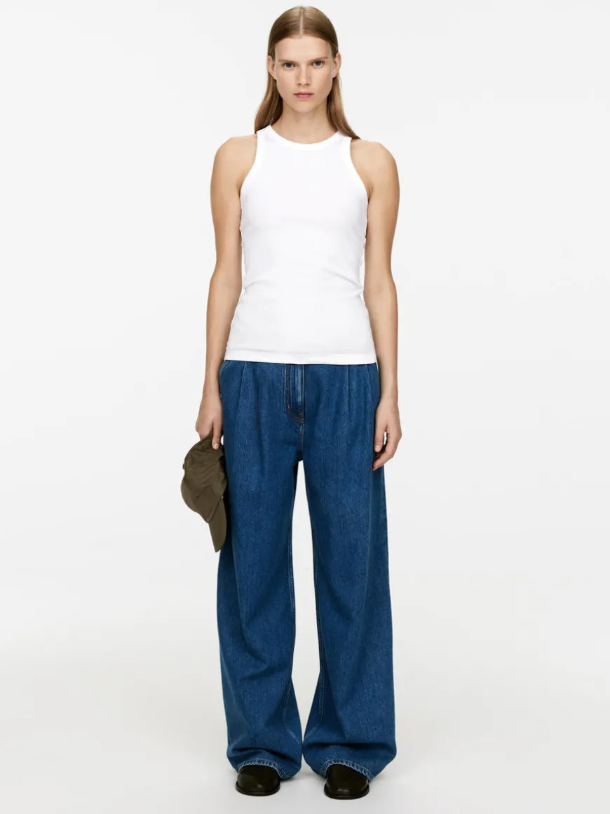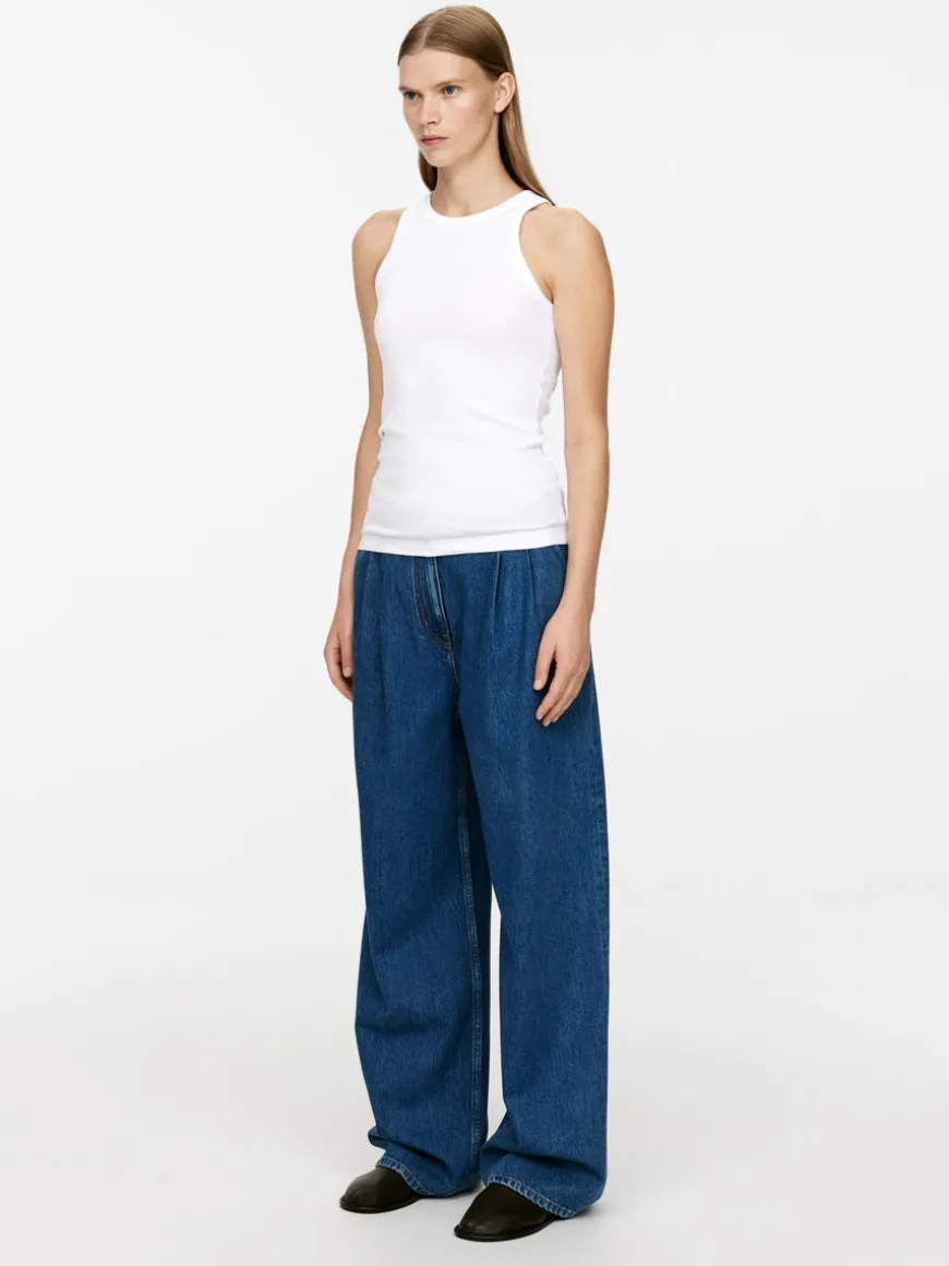 Slim-fit tank top cut from a soft ribbed jersey fabric made from cotton with a hint of elastane. Designed with a flattering racer-shaped neckline and back.