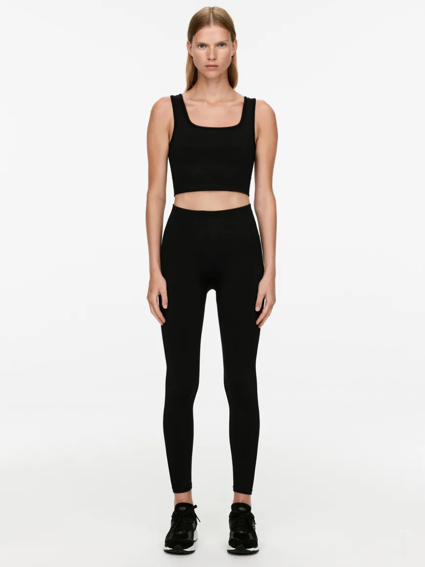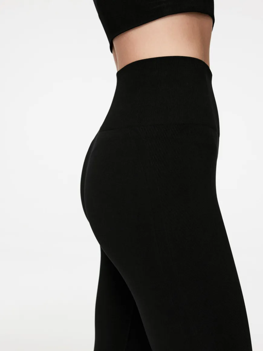 Seamless tights made from a stretchy, breathable piqué jersey fabric. This is a high waisted, full length style with medium support. Styled with a wide tubular waistband. Quick dry.