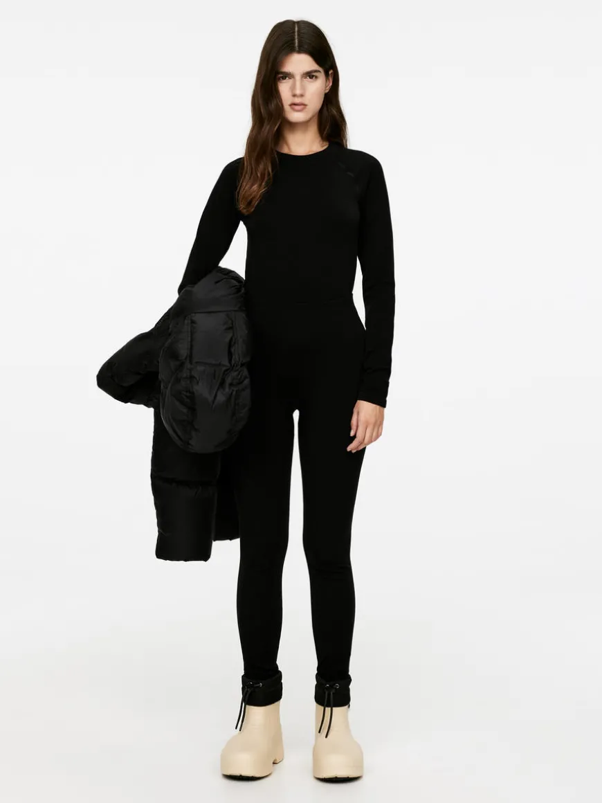 Seamless jersey tights crafted from a stretch wool blend. Slim fit. The style contains 59% RWS wool (TE-00047206). Products certified to the Responsible Wool Standard (RWS) contain wool fiber from farms independently certified to animal welfare and land management requirements.