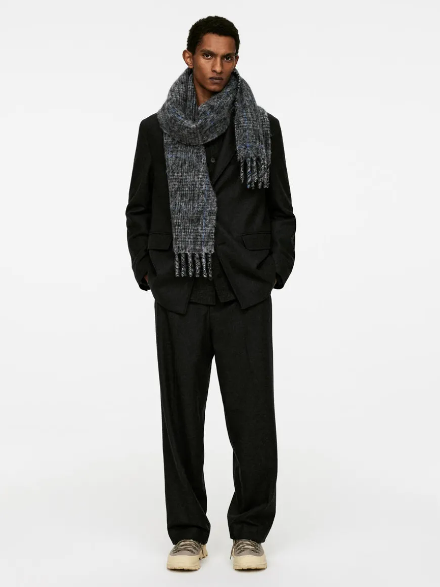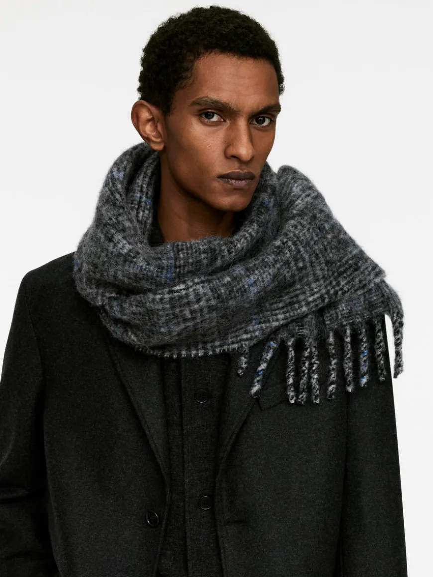 Scarf crafted from a premium alpaca blend with a hairy texture. Length 200 cm, width 30 cm.