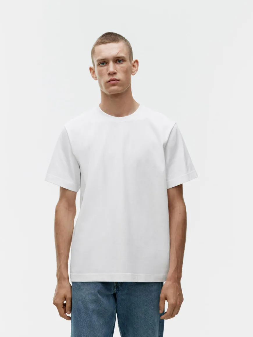 This is one of the limited-edition Fantastic Man and ARKET T-shirts, featuring the magazine’s logo on the rear of ARKET’s signature crew-neck T-shirt, cut from a heavy-weight jersey fabric made of cotton. The limited ARKET and Fantastic Man capsule collection also features T-shirts that simply spell FAN, a mirrored style and a FAN baseball cap.