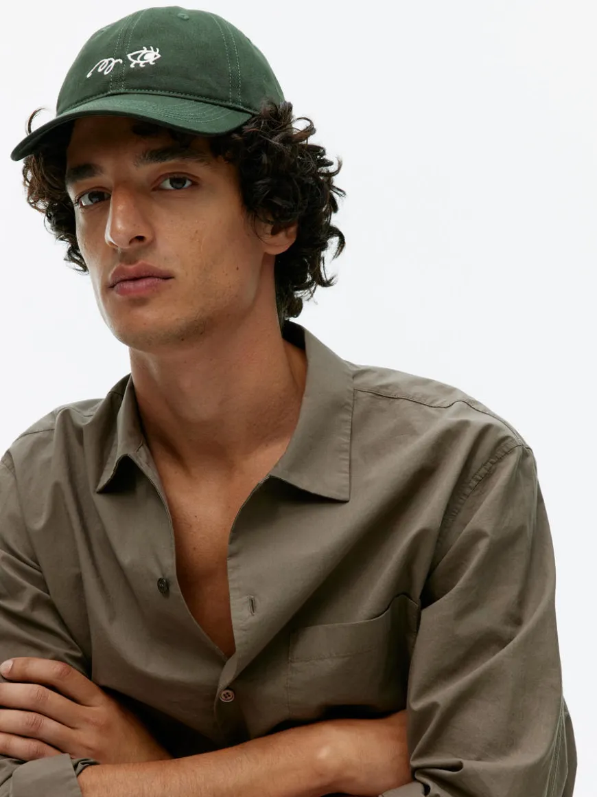 Six-panel cotton cap with embroidery at front and back. Strap with a metal buckle at the back, to adjust size. This product is part of the ARKET CAFÉ collection featuring illustrations by Olga Prader.