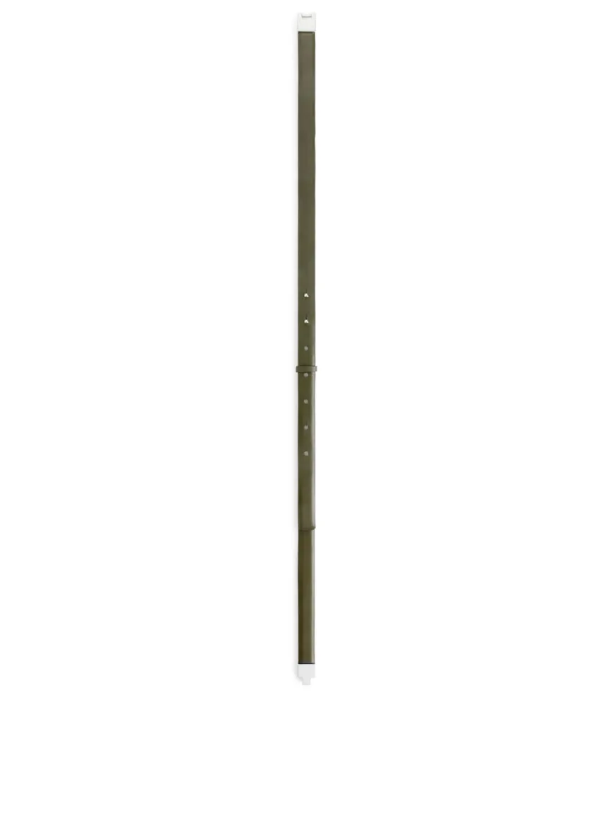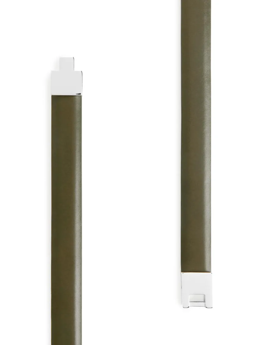 Slim hip belt with decorative gold-plated square buckle at front. Adjustable stud closures at the back. XS/S 105.5 cm, M/L 116.5 cm.