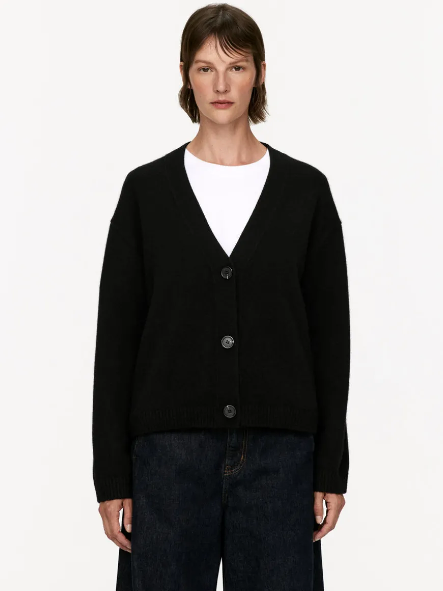 Long-sleeved cardigan crafted from cashmere and a portion of wool for added strength. Button closure and rib-knitted trims.