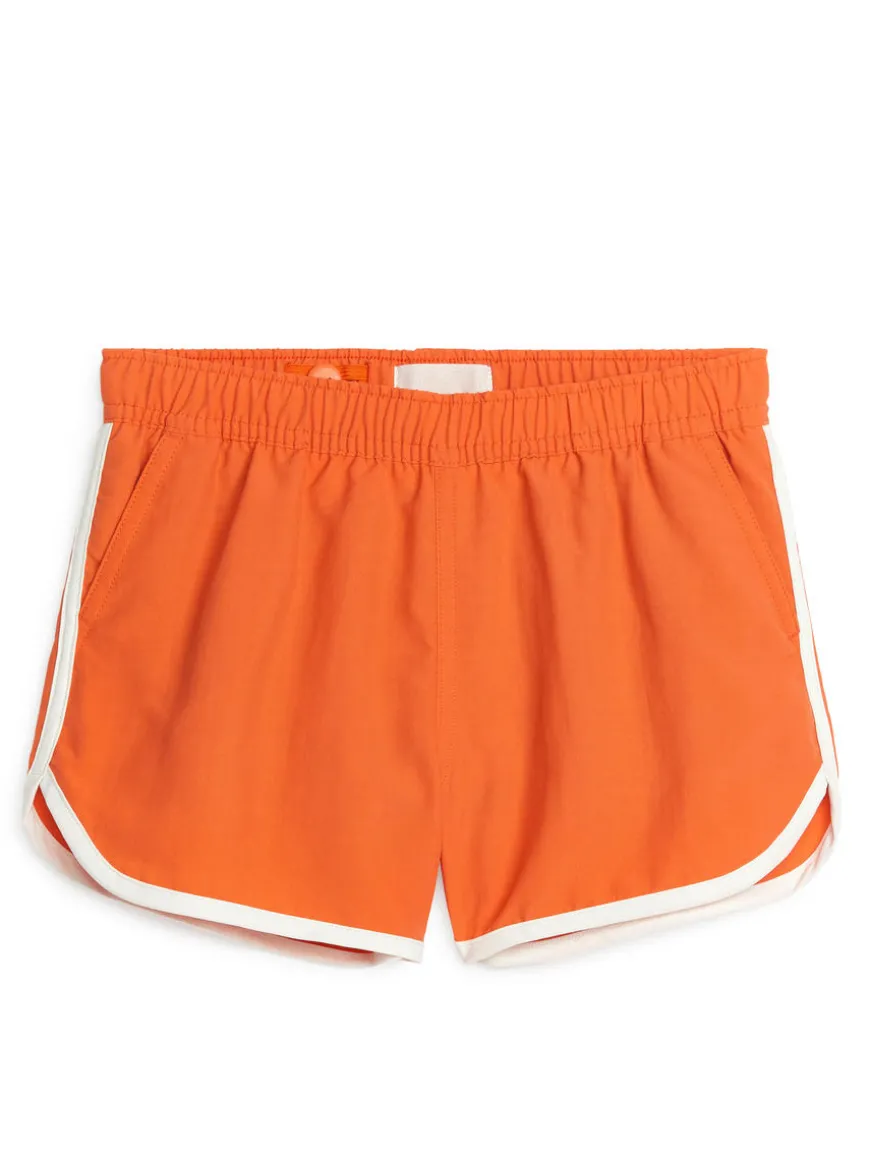 Swimshorts with contrast bindings. Cut for a regular fit. Detailed with side pockets, elastics at waist and mesh lining.