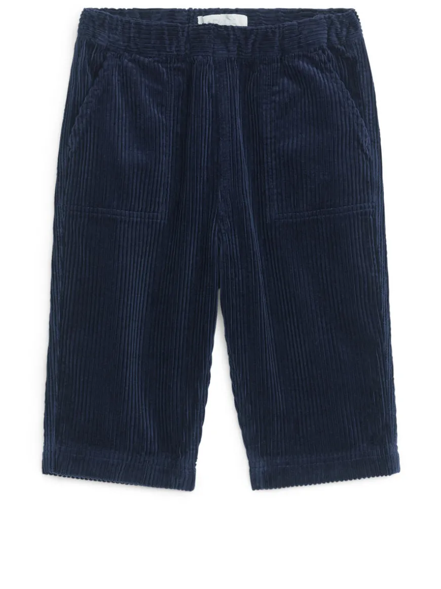 Trousers in cotton corduroy. Styled with adjustable elastics in waist and slanted side pockets. Regular fit.