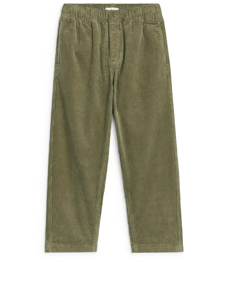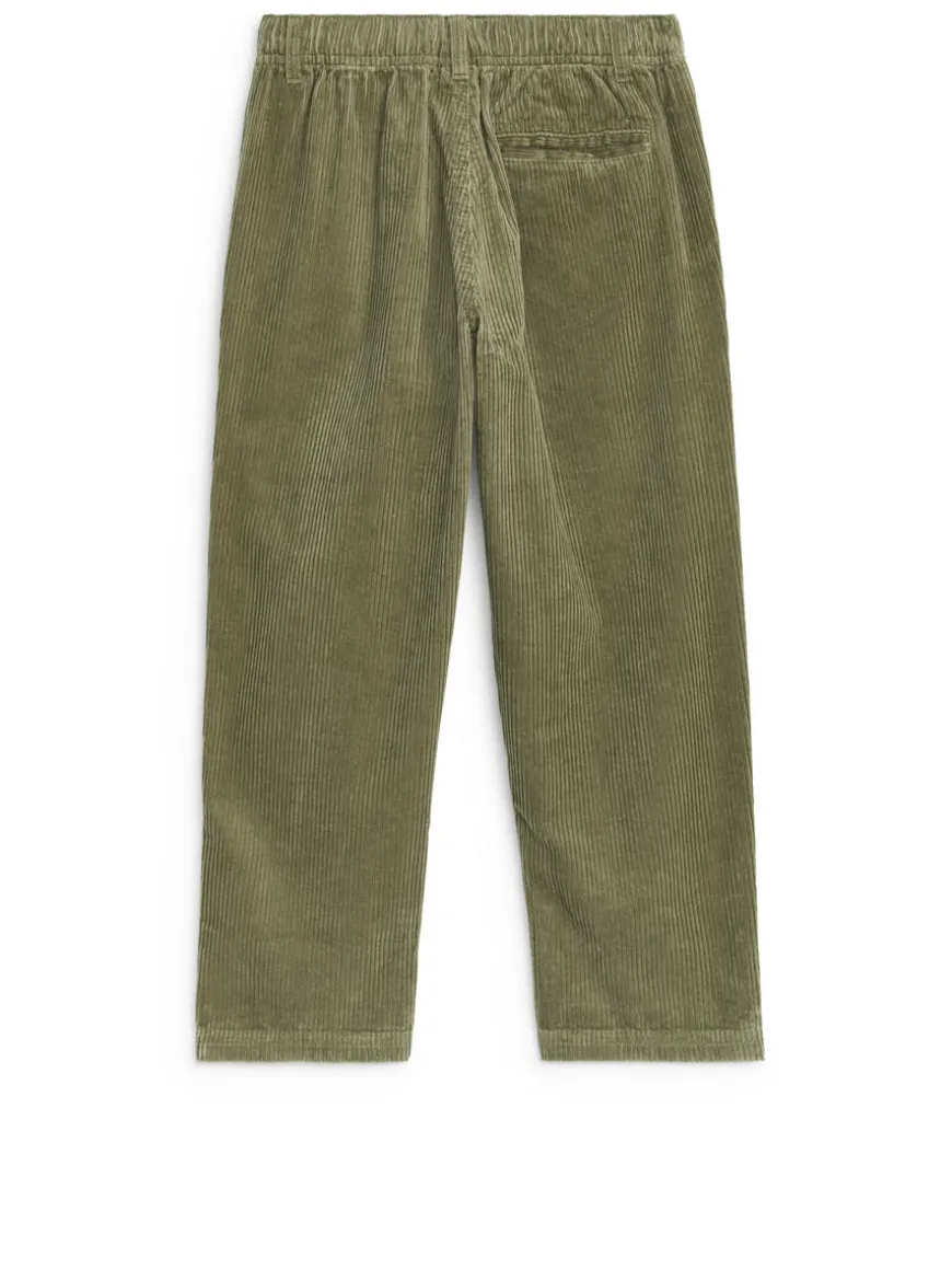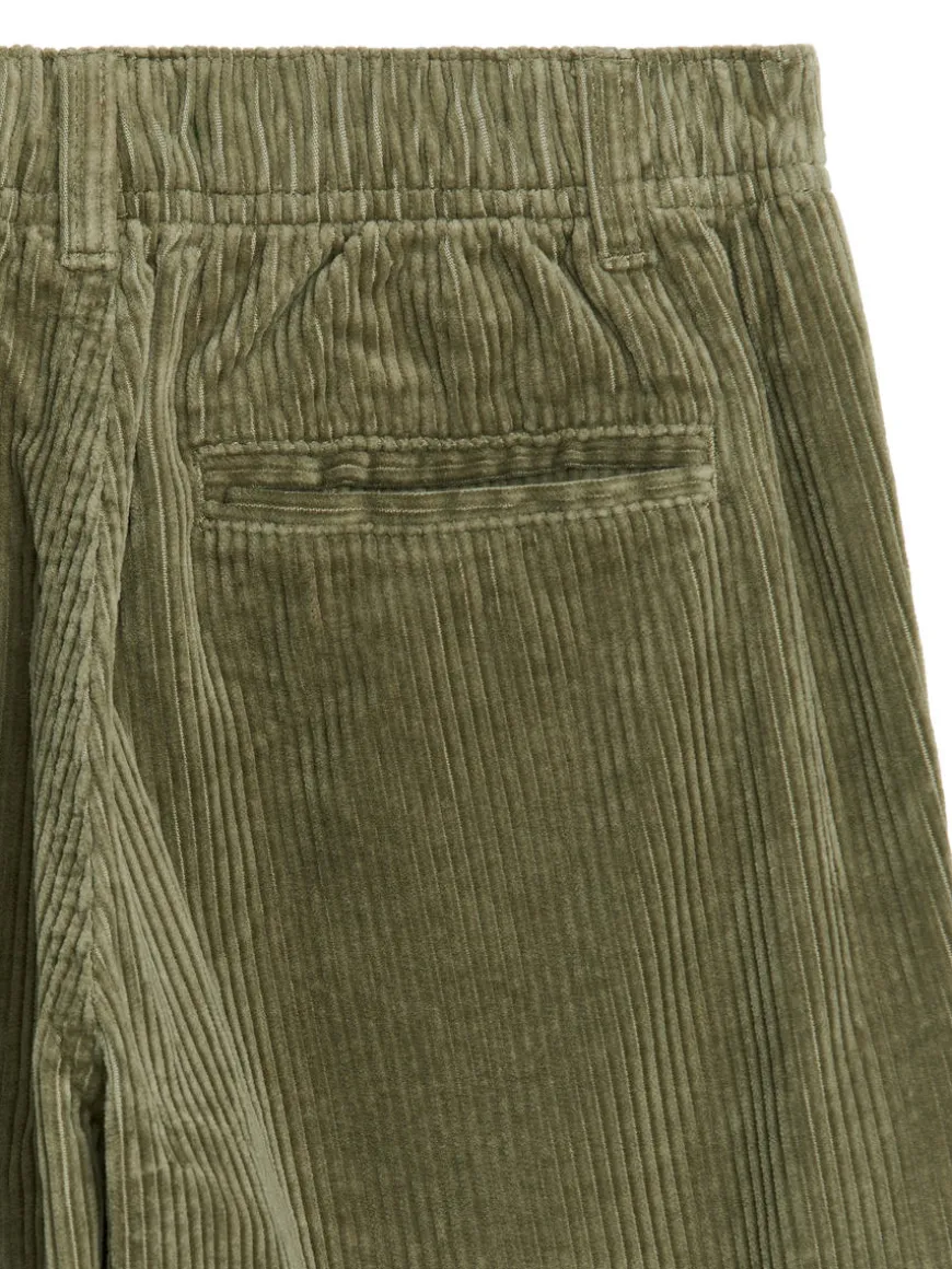 Pull-on trousers crafted from a baby corduroy fabric. Designed for a relaxed fit and detailed with pockets in side seams, jetted back pockets and an adjustable waistband.