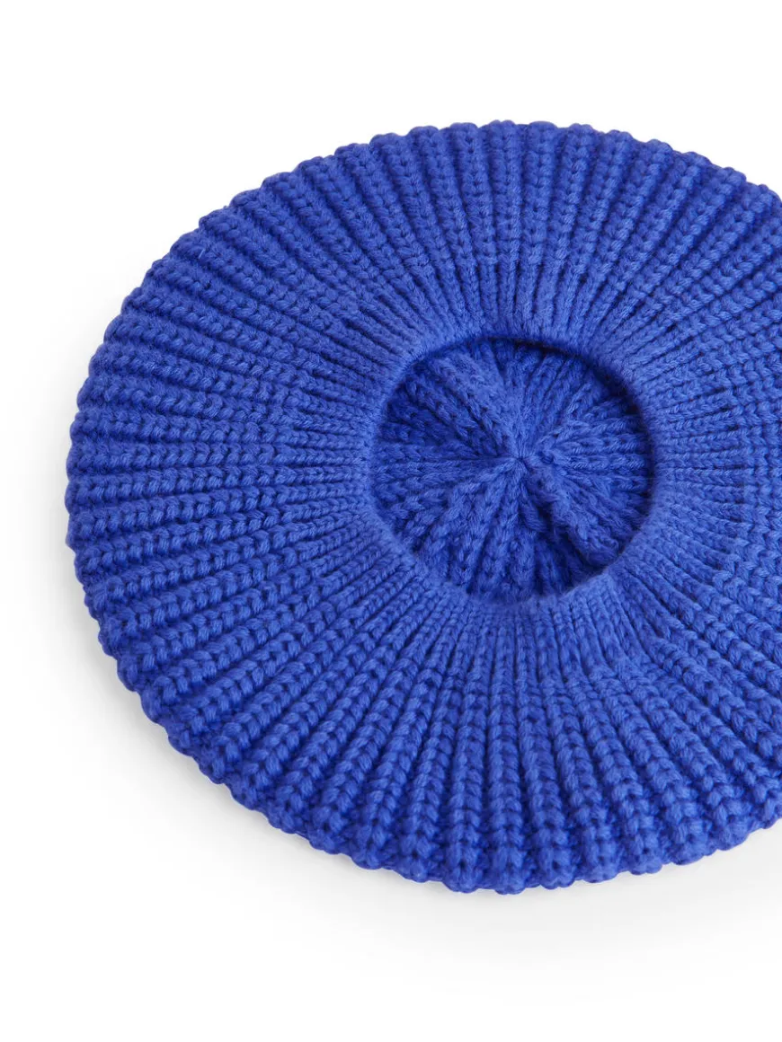 Beret knitted with a half cardigan stitch in cotton with a hint of wool.