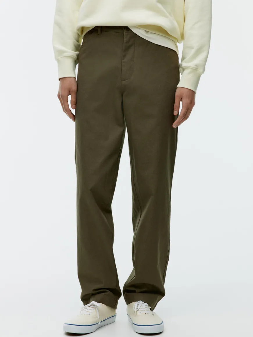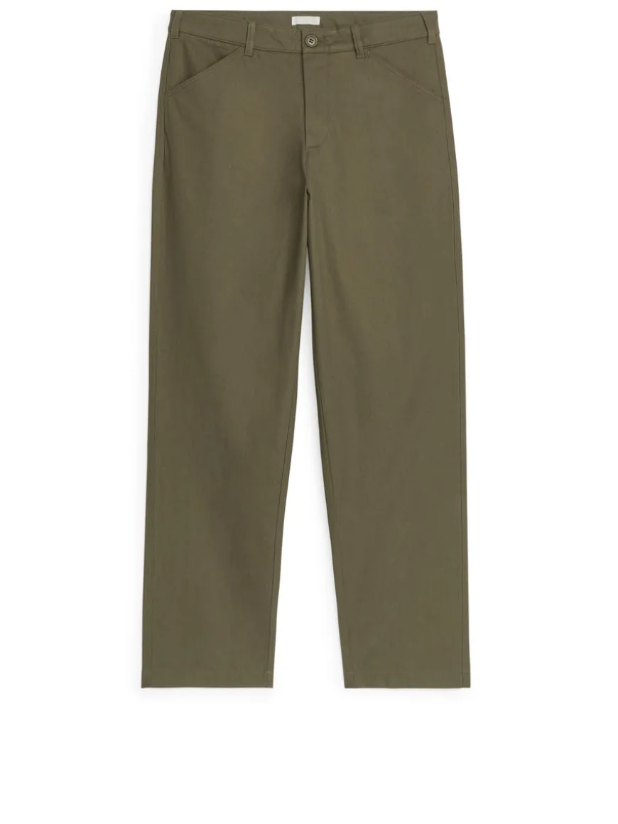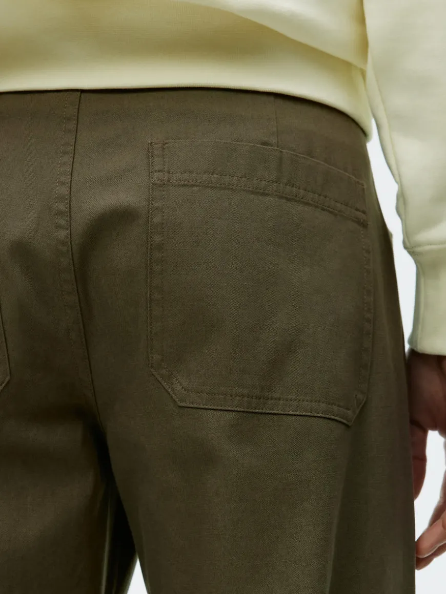Trousers crafted from cotton. Styled with slanted side pockets and patch pockets in the back. Corozo buttons and zip fly and hook and bar closure. Regular fit.