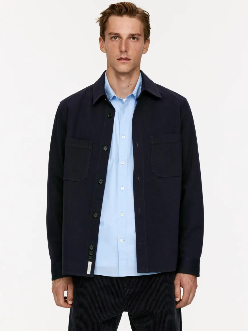 Overshirt crafted from a smooth cotton twill weave. A straight-cut style detailed with two chest pockets, a regular collar and a back yoke. Buttoned cuffs. Corozo buttons made from tagua nuts.