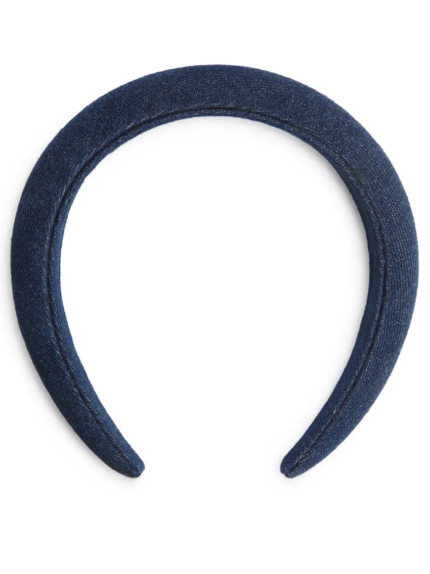 Soft padded Alice band covered in a cotton fabric with a denim appearance.