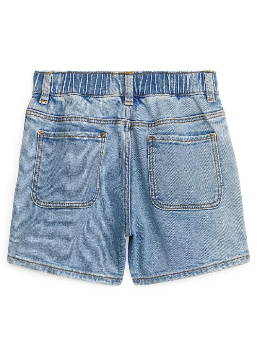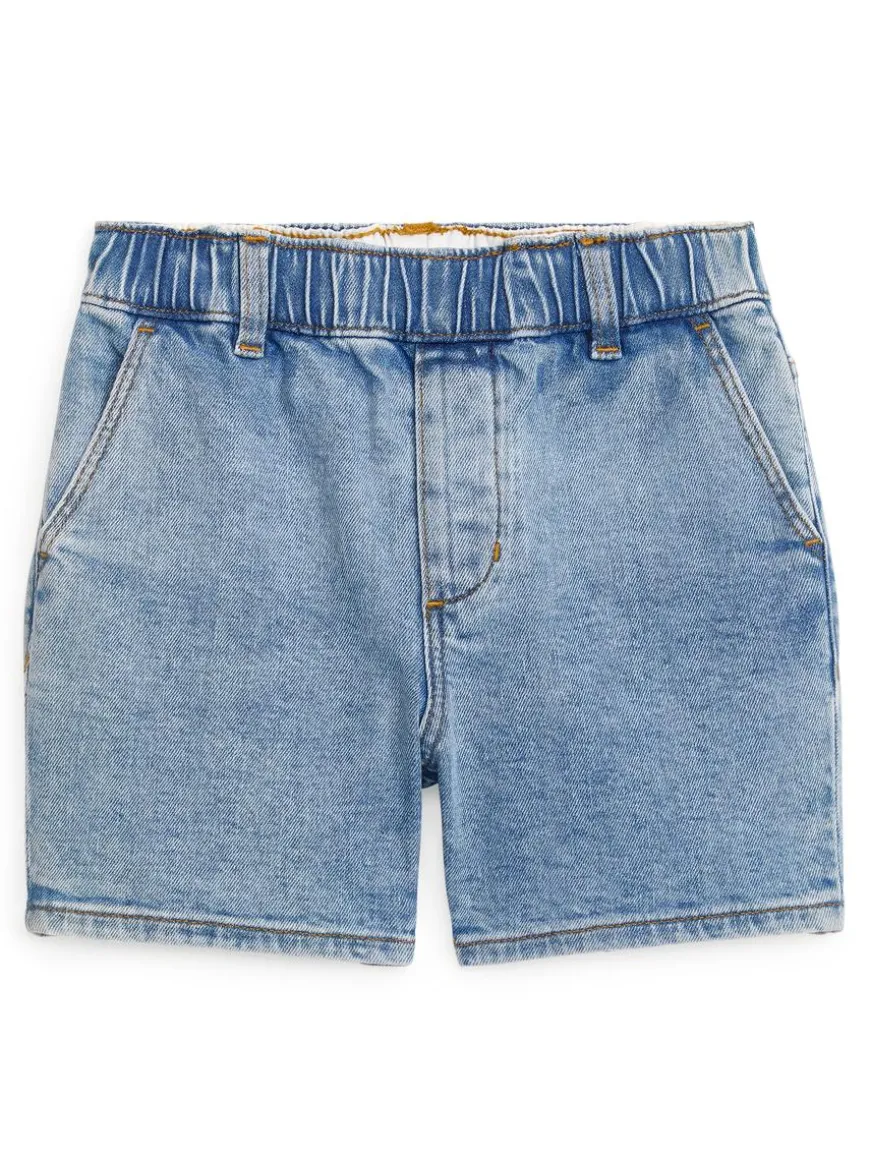Denim shorts made from a stretchy cotton blend. Slanted pockets at front and patch pockets at the back. Waistband with belt loops and adjustable elastics. Fake fly. Regular fit.
