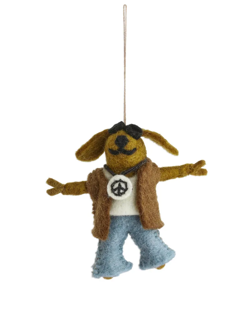 Dog made of felted wool. Designed by the British brand Felt So Good and crafted by hand in Nepalese cottage industries. Ribbon for easy hanging. Height 12 cm.