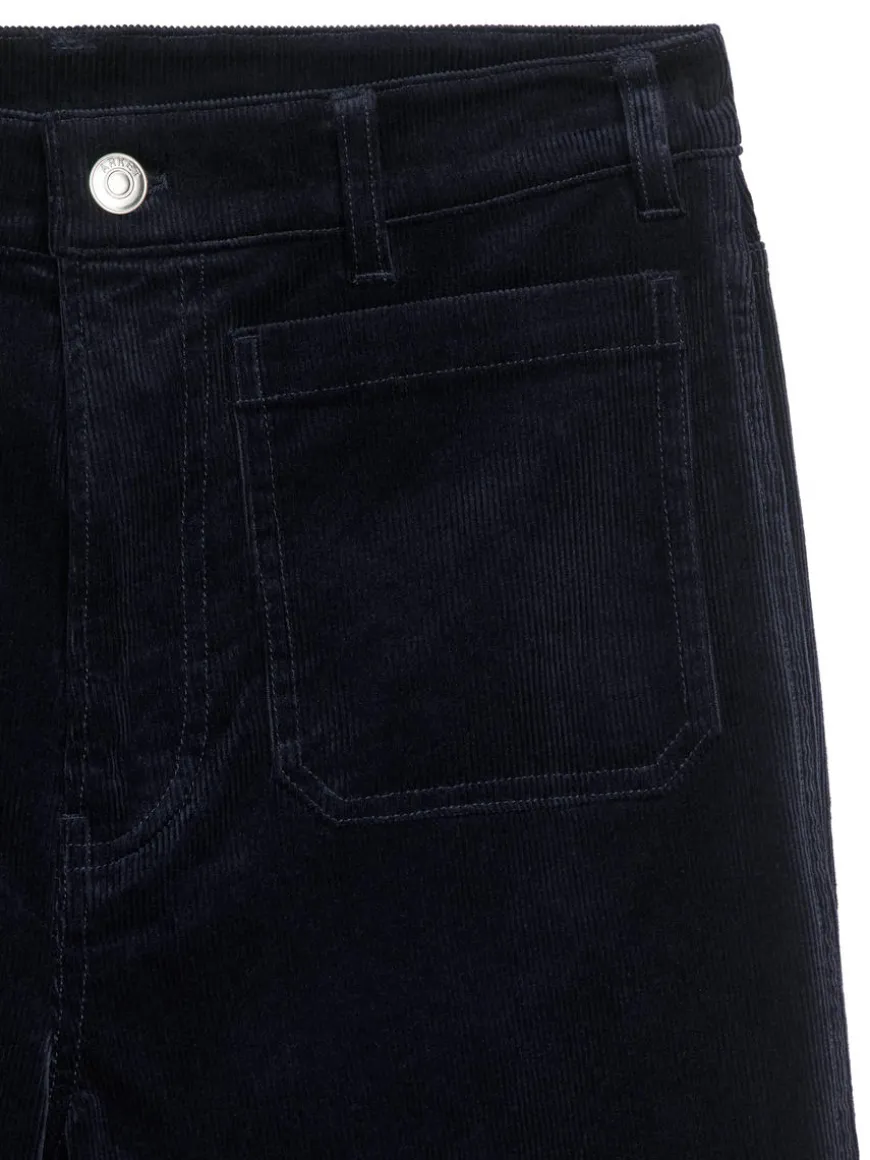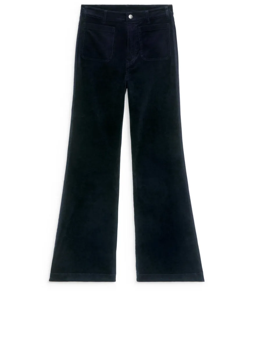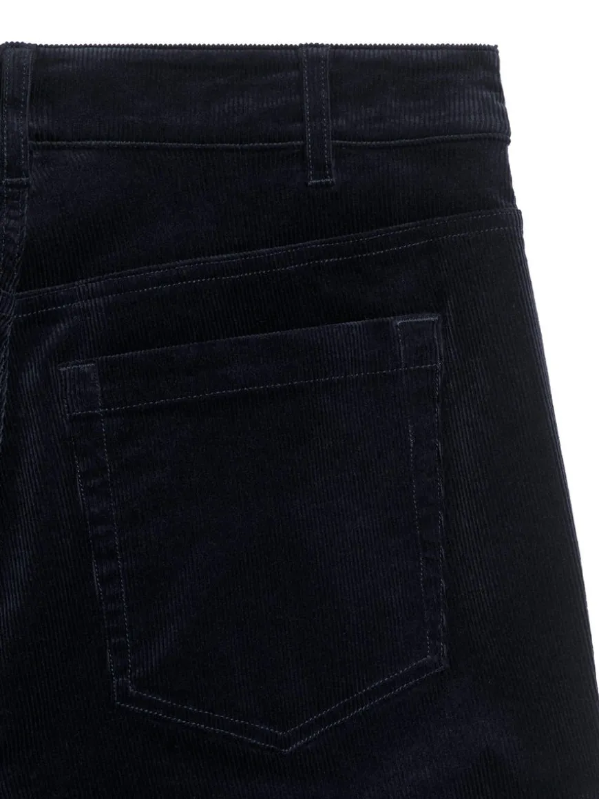 Corduroy trousers crafted from a stretchy cotton blend. This is a high waist, slim fit style with flared legs.