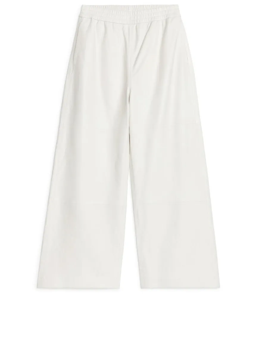 Relaxed-fit trousers crafted from chrome-free leather. Styled with flared legs and elastics at waist.