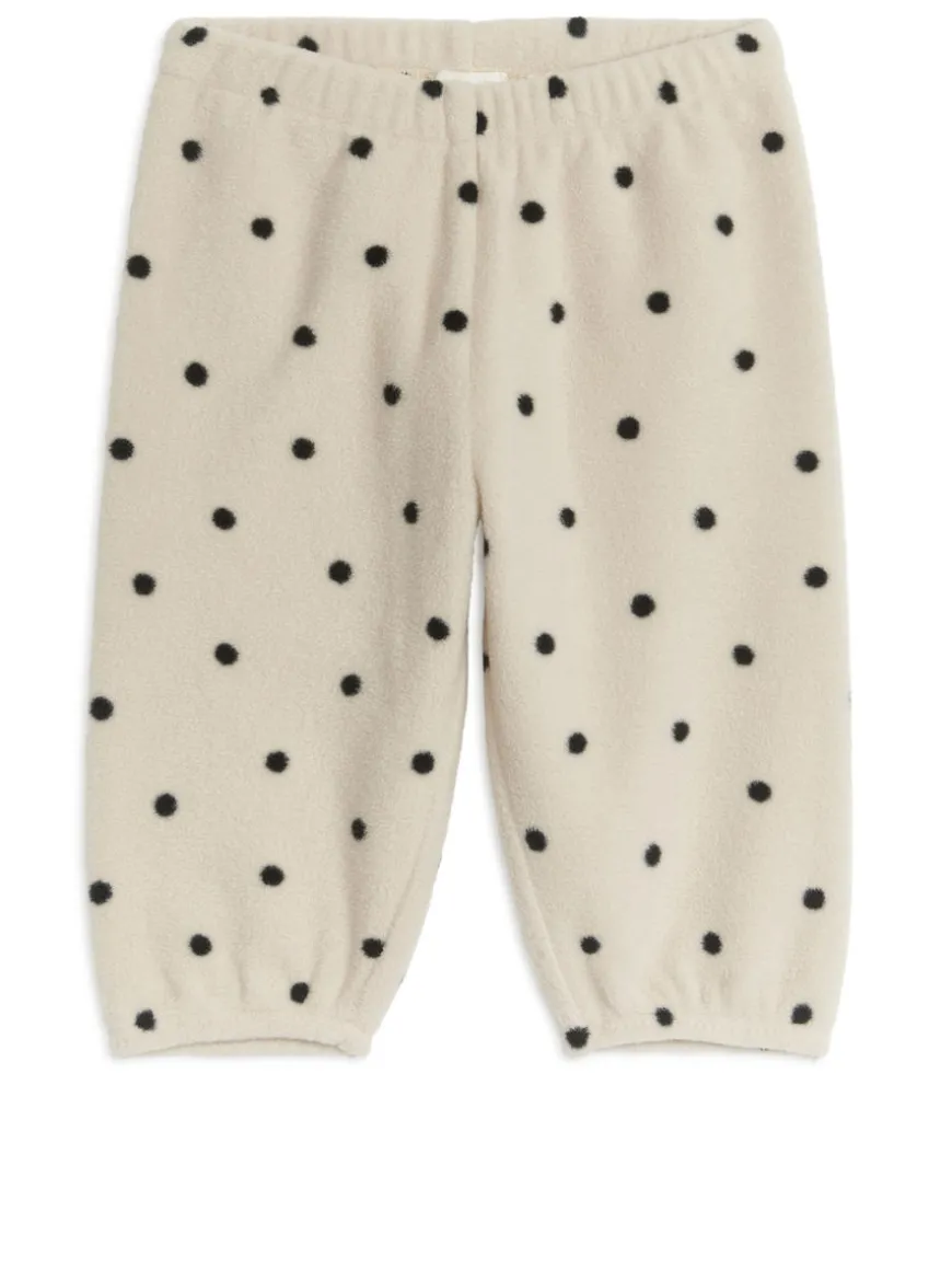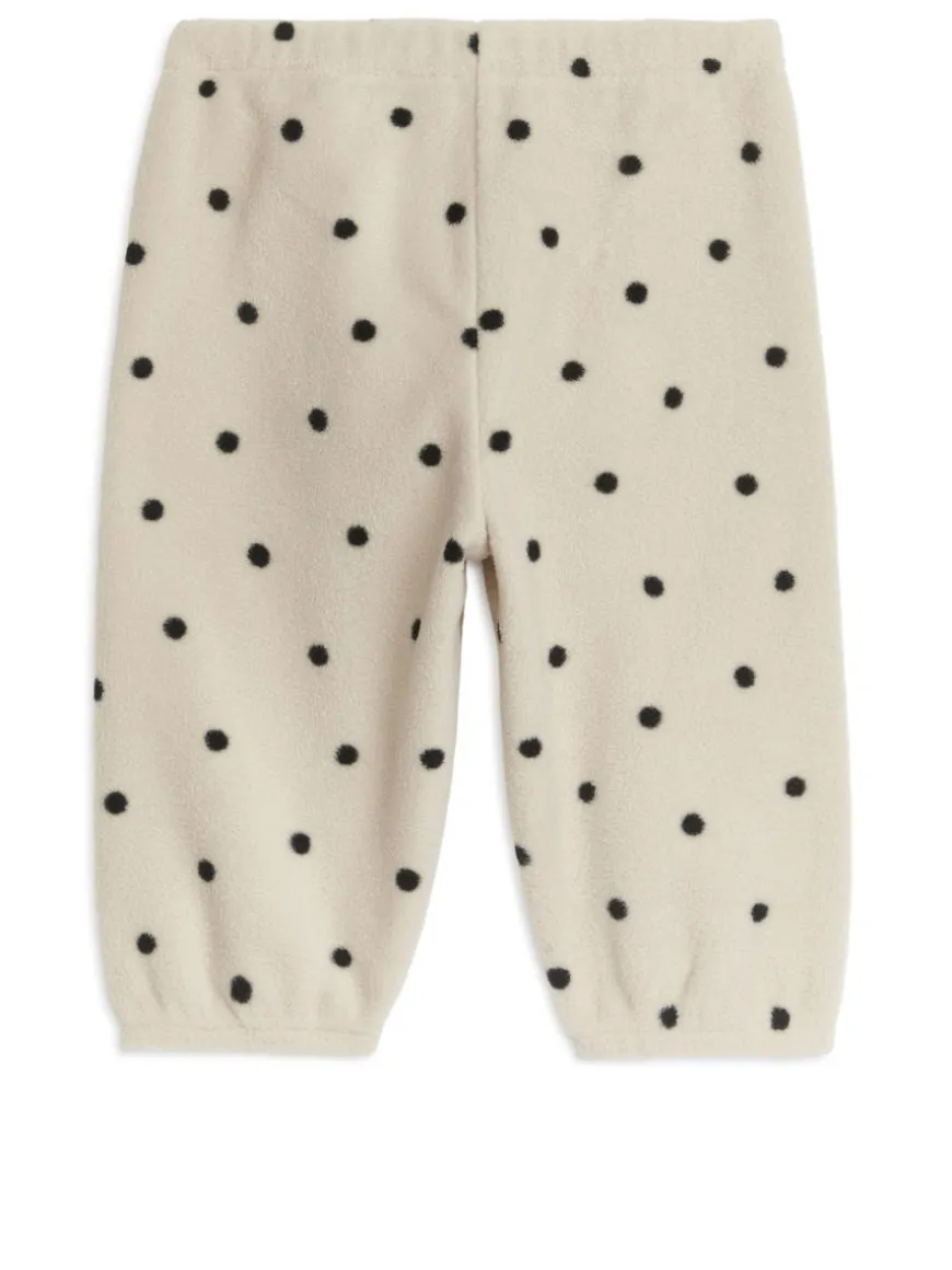 Fleece sweatpants made from a soft fleece fabric. Detailed with an adjustable elastic waistband and elastics at end of legs.