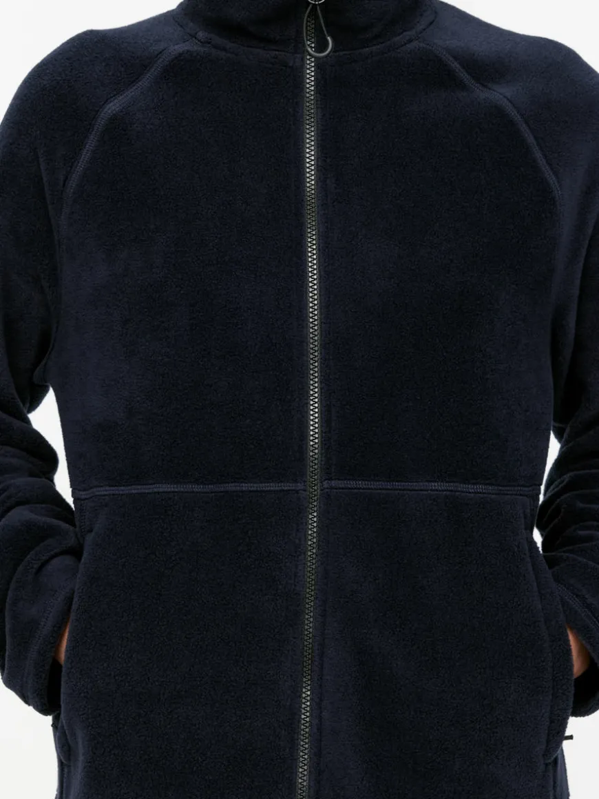 Mid-layer jacket crafted from a soft fleece fabric. Styled with a front zip and thumbholes.