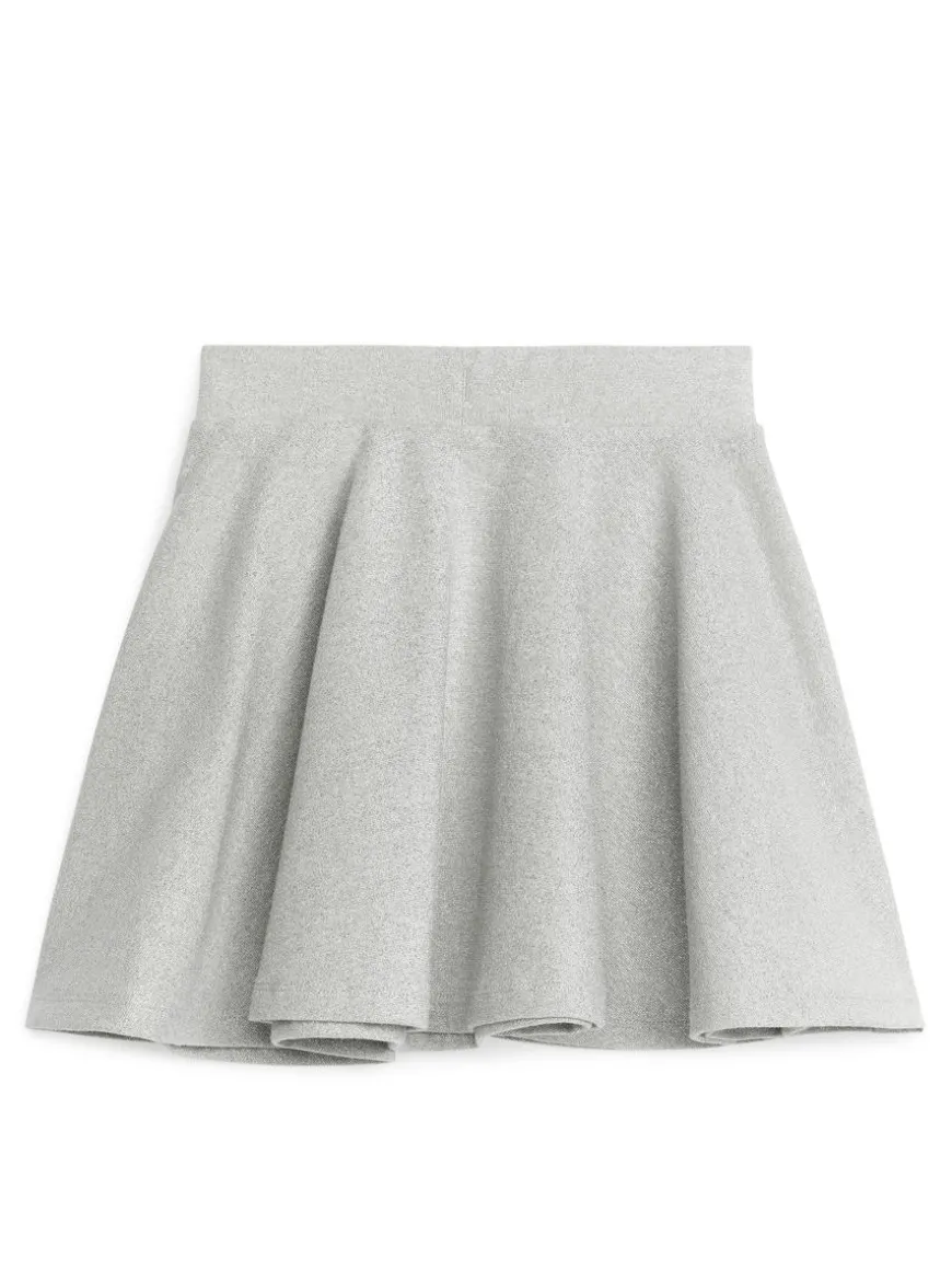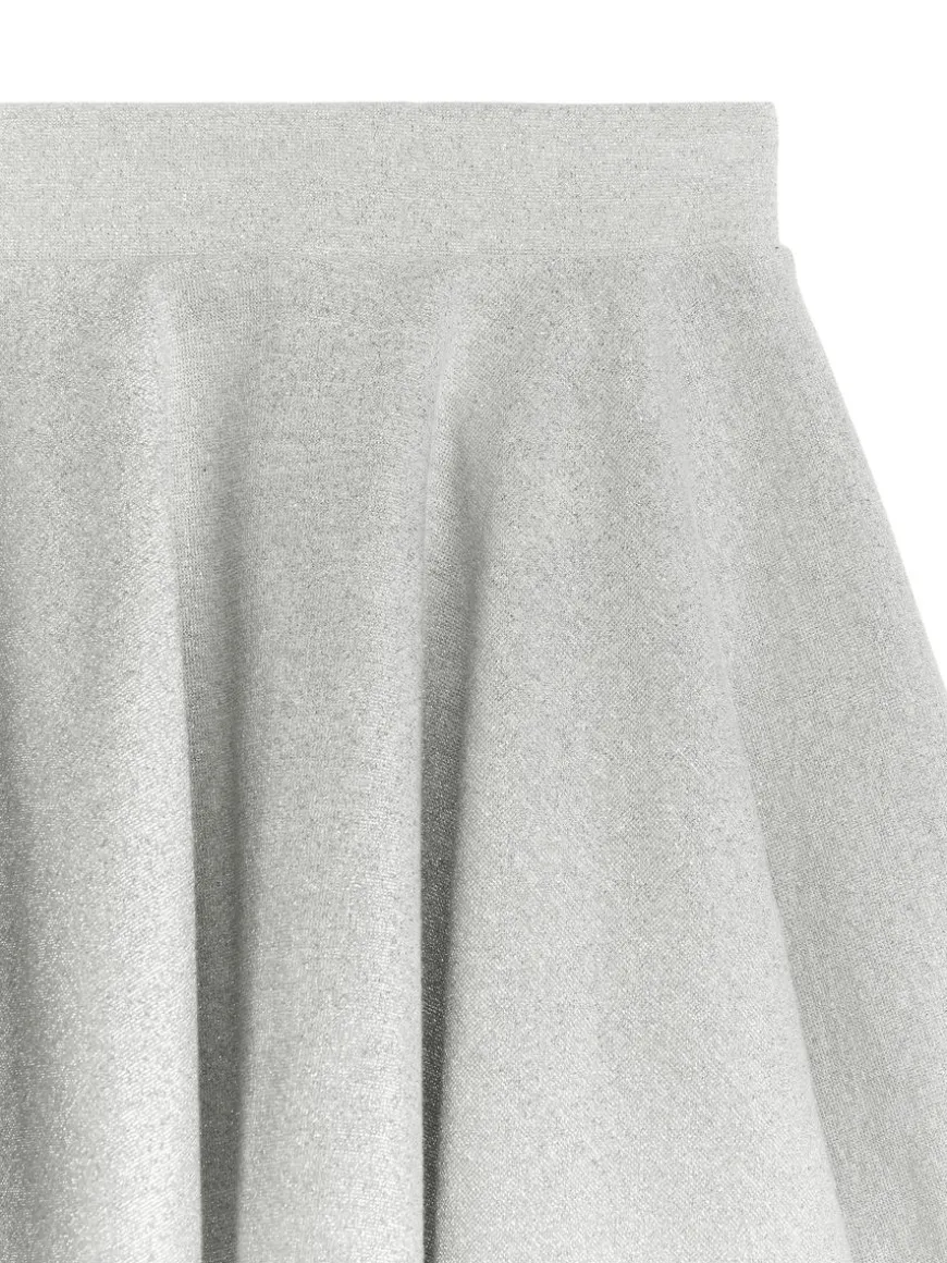Flowy skirt cut from a soft jersey fabric made with Lurex thread for a glittering effect. Adjustable elastics at waist.
