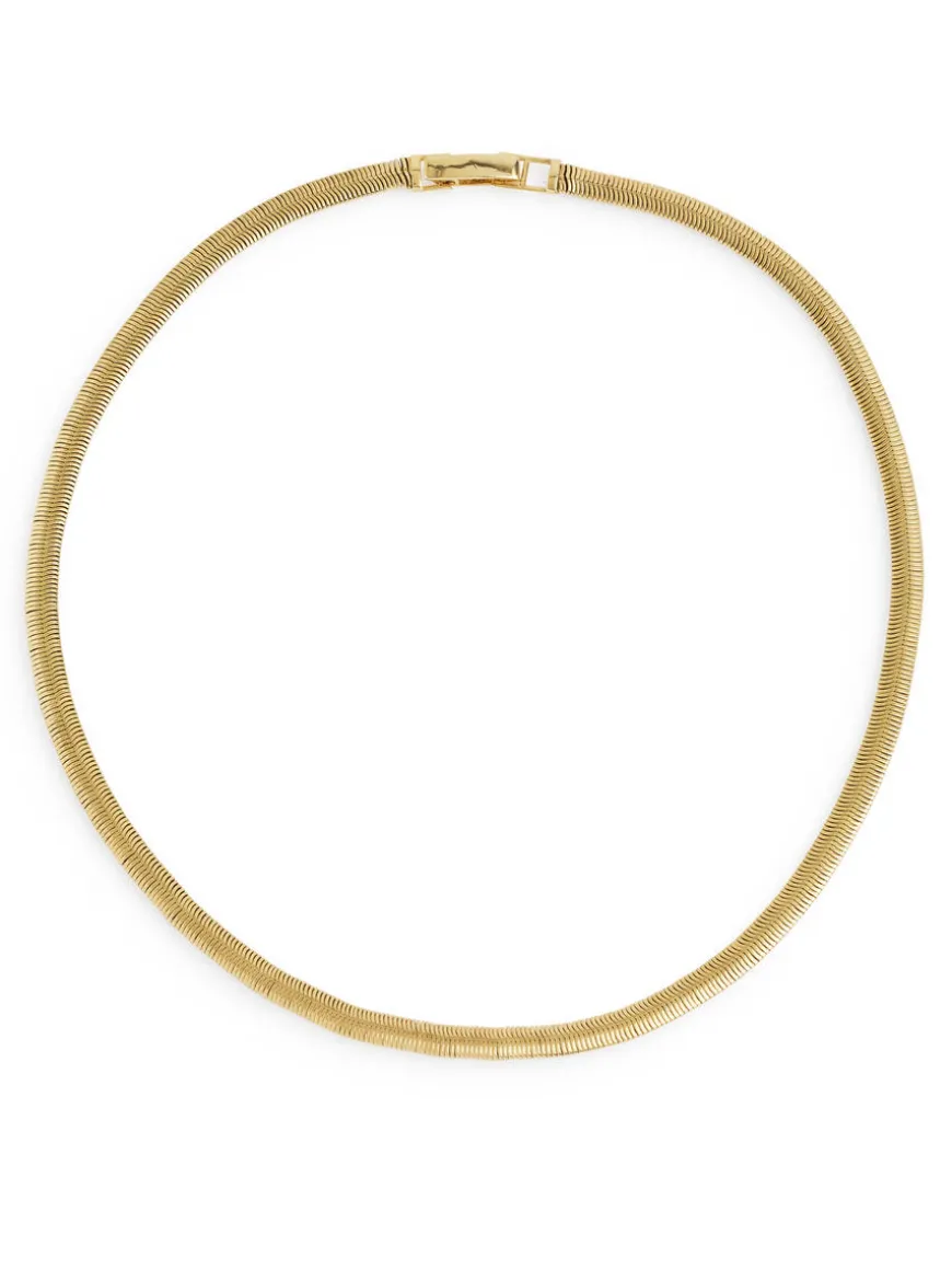 Snake chain necklace made from gold-plated brass. Total length 42 cm.