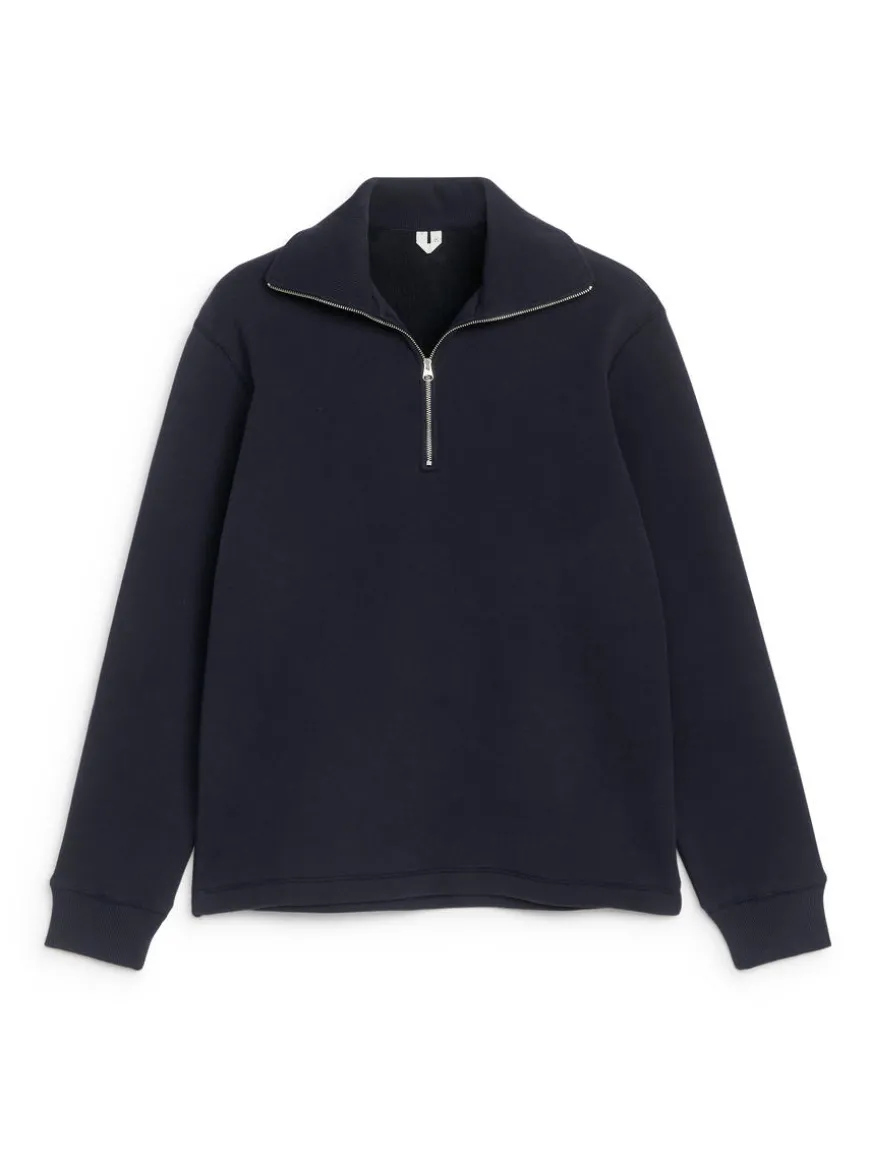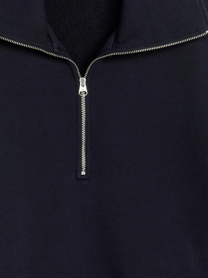 Sweatshirt crafted from a soft French terry cloth with a heavy loop back. Cut for a relaxed fit and styled with a high rib neck with a half zip.