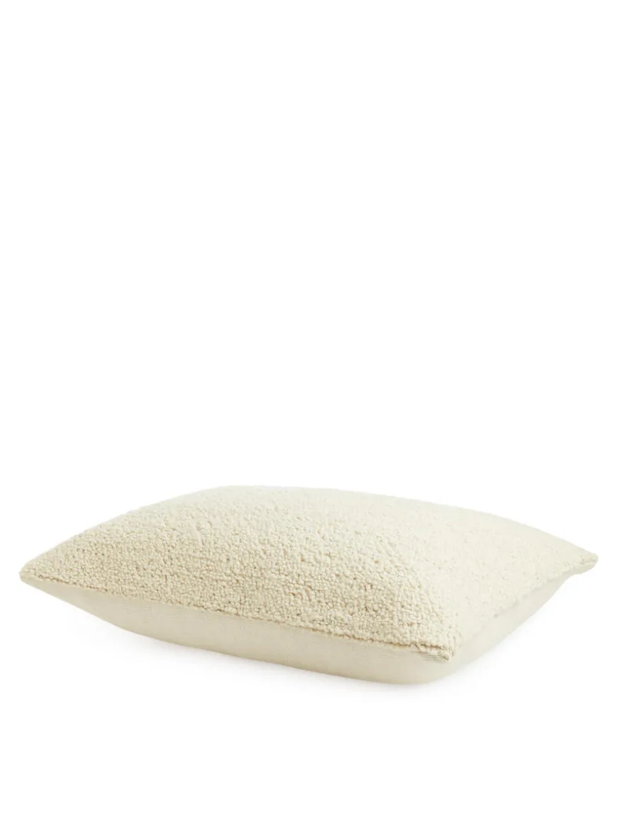 Handwoven from pure wool, this cushion cover features a tactile, structured surface. The tonal backing is made of linen and holds a concealed zip closure.