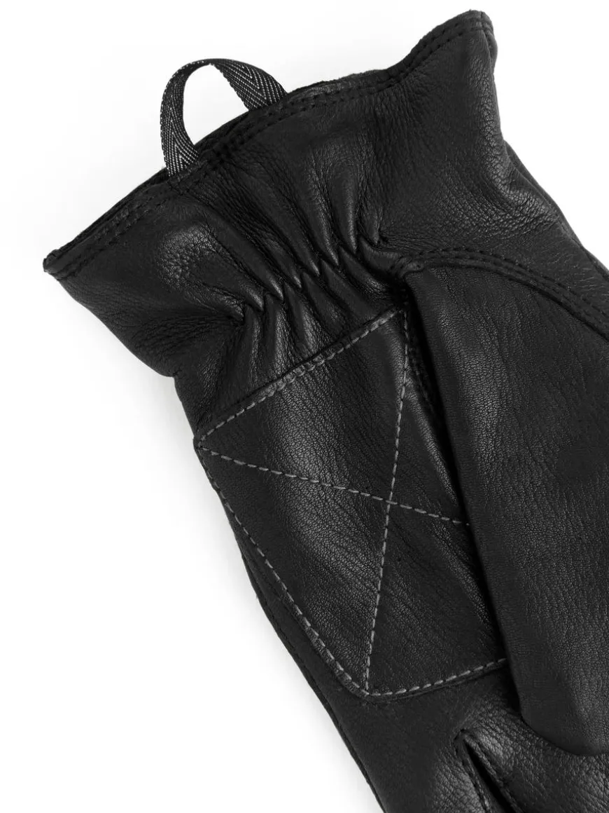 The Hestra Eirik gloves are crafted from deerskin with a fine grain and a rustic feel. Lining in wool and polyamide for light warmth. The palm is reinforced, and features contrasting seams. Short cuff with elasticated seams on the inside and upper wrist. Pull tab for easy dressing.