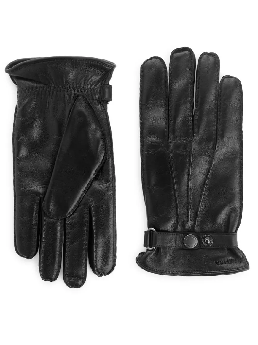 Winter glove with a soft, knitted wool lining from Hestra. Handsewn in supple Italian lamb nappa with a strap and press stud across the wrist.