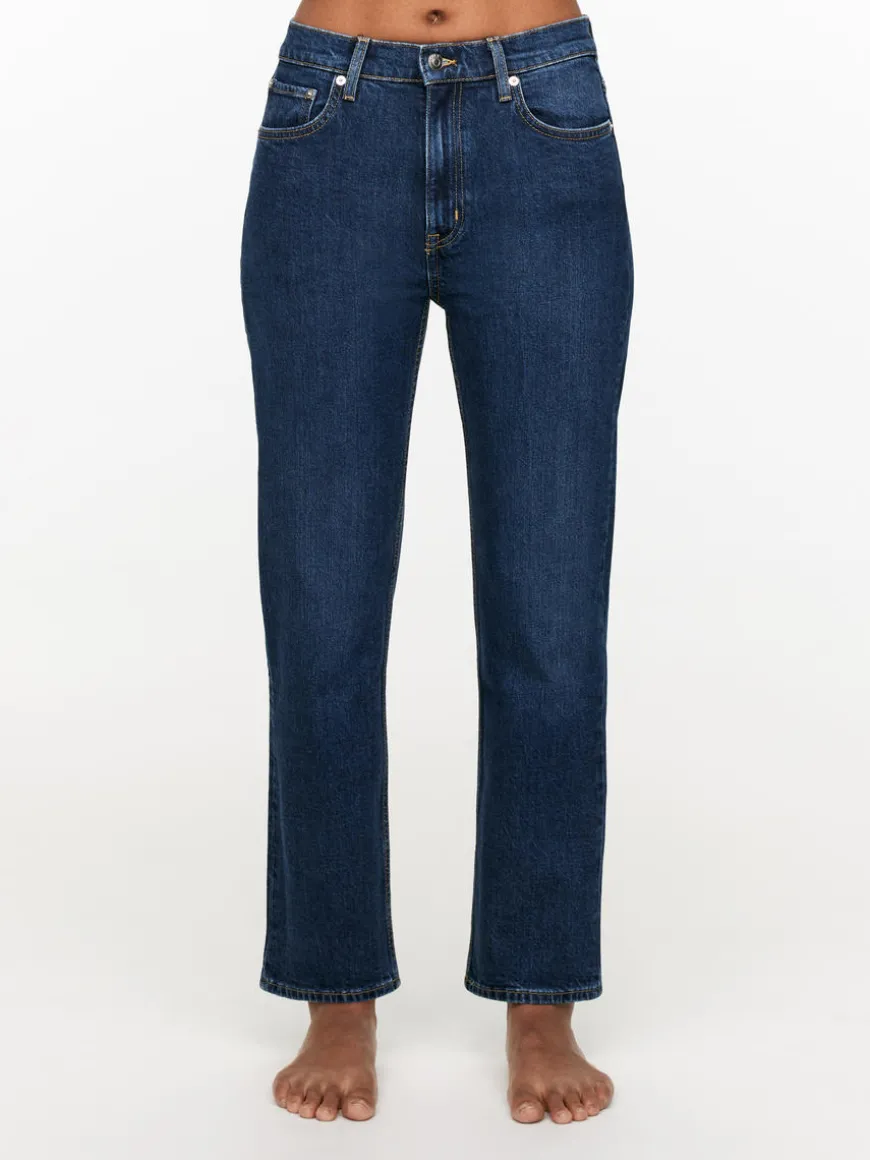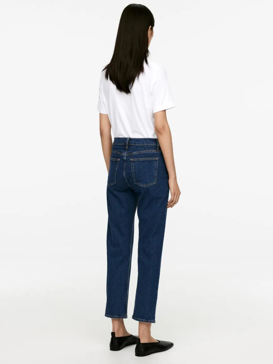 JADE CROPPED is cut in a stretch denim and features a mid-rise waist, slim fit and tapered, cropped legs. Zip fly.