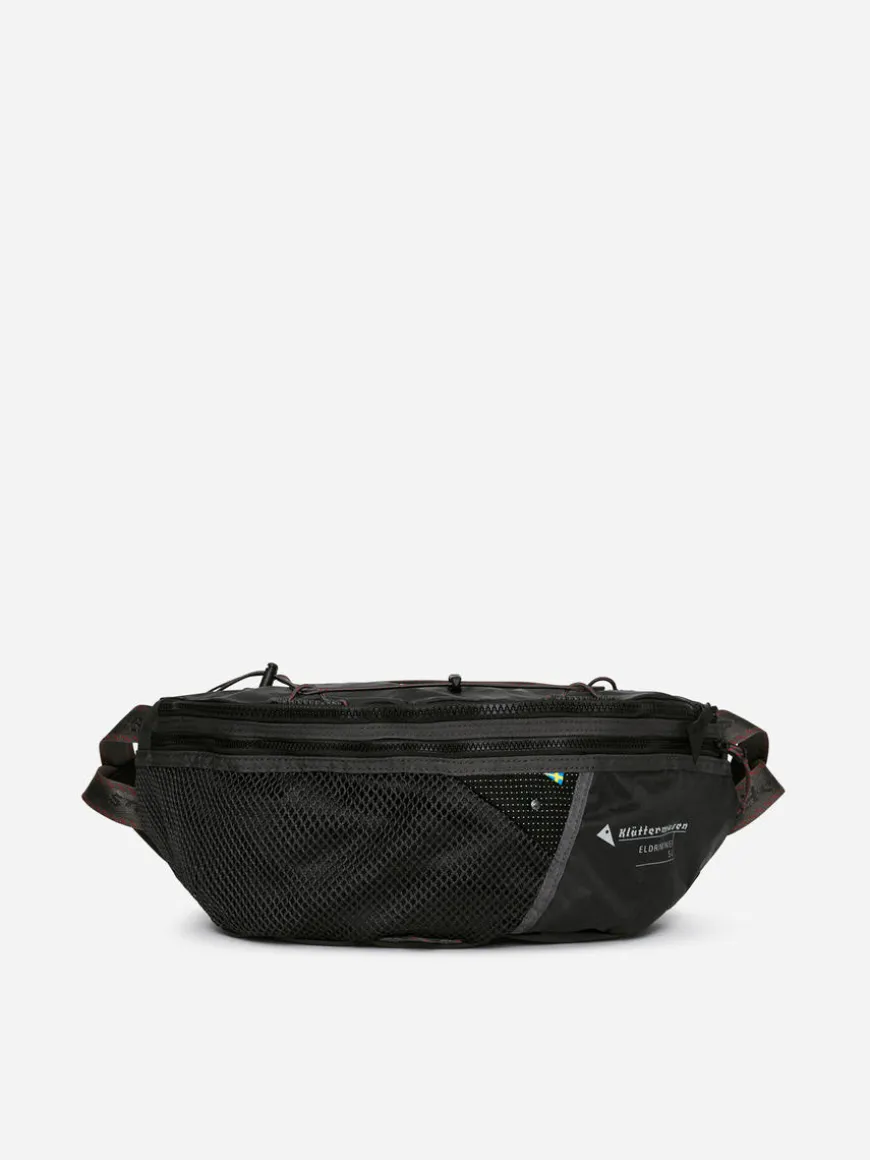 Lightweight lumbarpack from Klättermusen. Foldable and easy to pack into a larger bag. Main compartment and mesh pocket with zip closure. Bungee cord system on the top for easy attachments of additional layers. Back panel covered in air mesh for ventilation and comfort. Weight 170 g. Adjustable fit, body back length 42-54 cm.