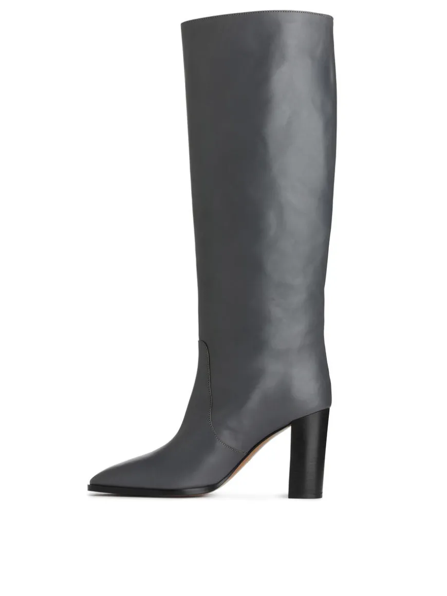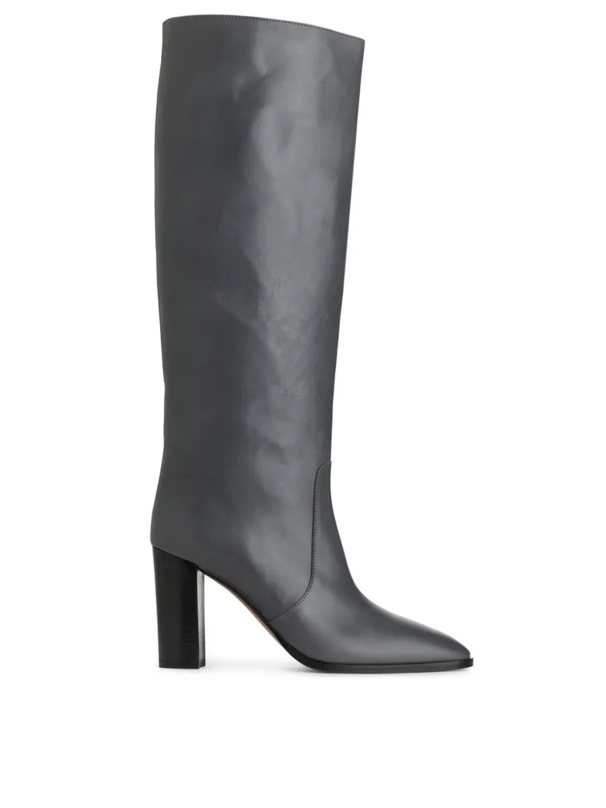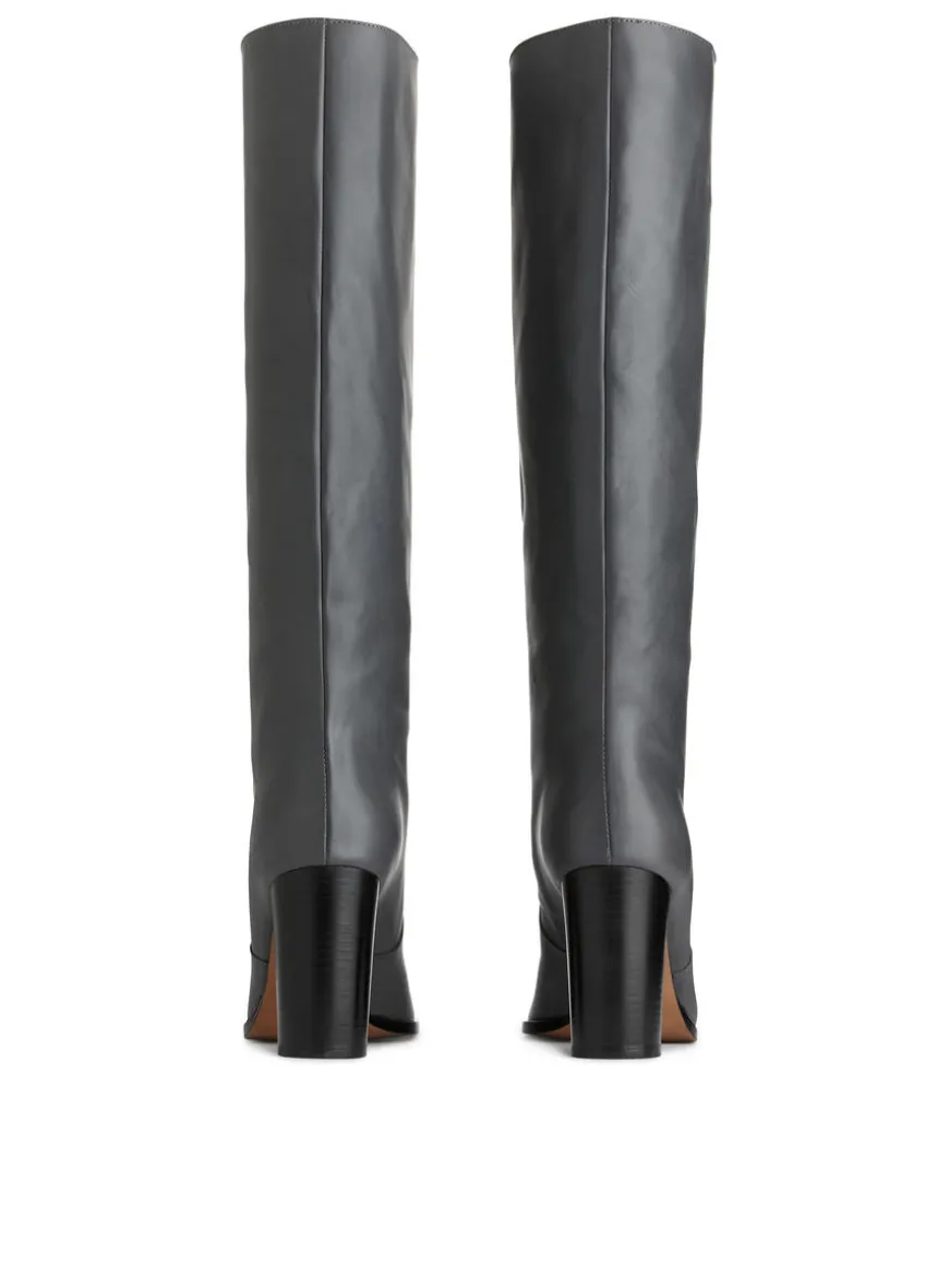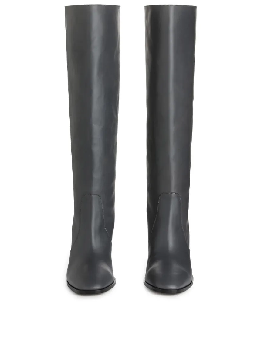 Knee-high leather boots designed with an 8 cm heel and a tubular shaft. The decorative seam at front gives the style a seventies feel.