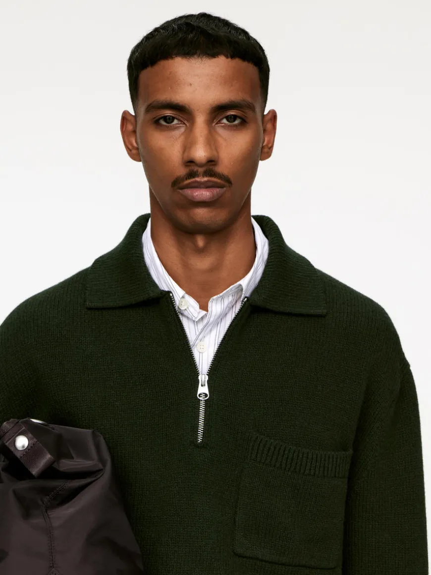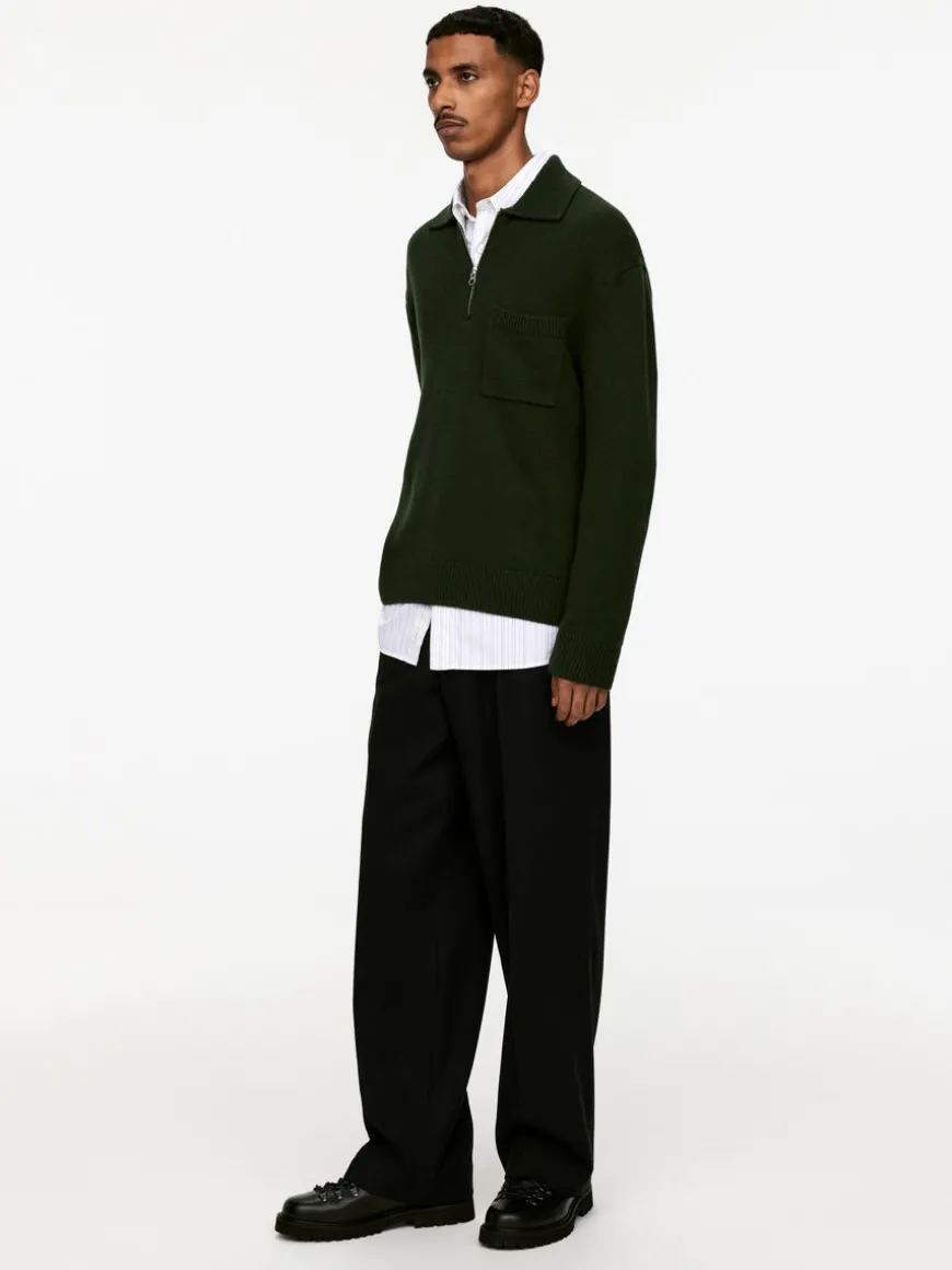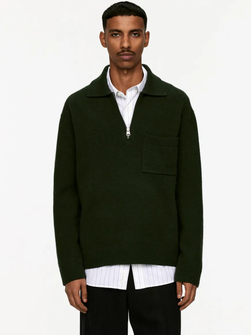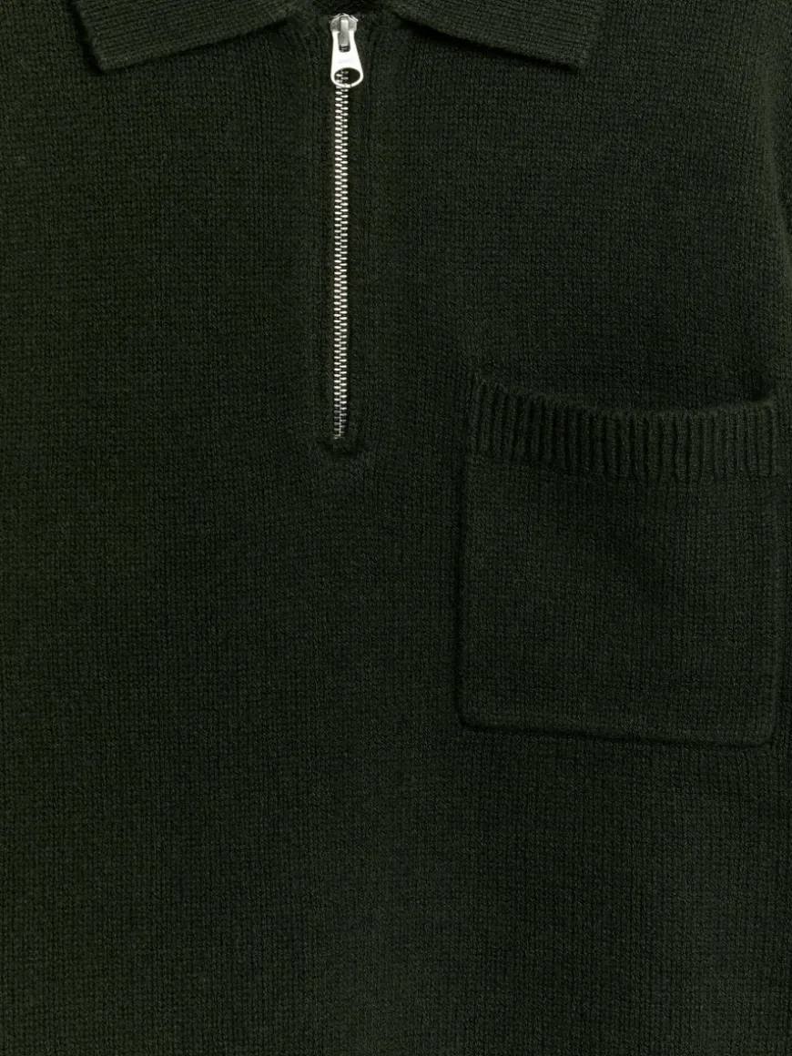 Relaxed polo shirt crafted from wool. It features a pointed collar, a half-zip front and a single patch pocket on the chest.