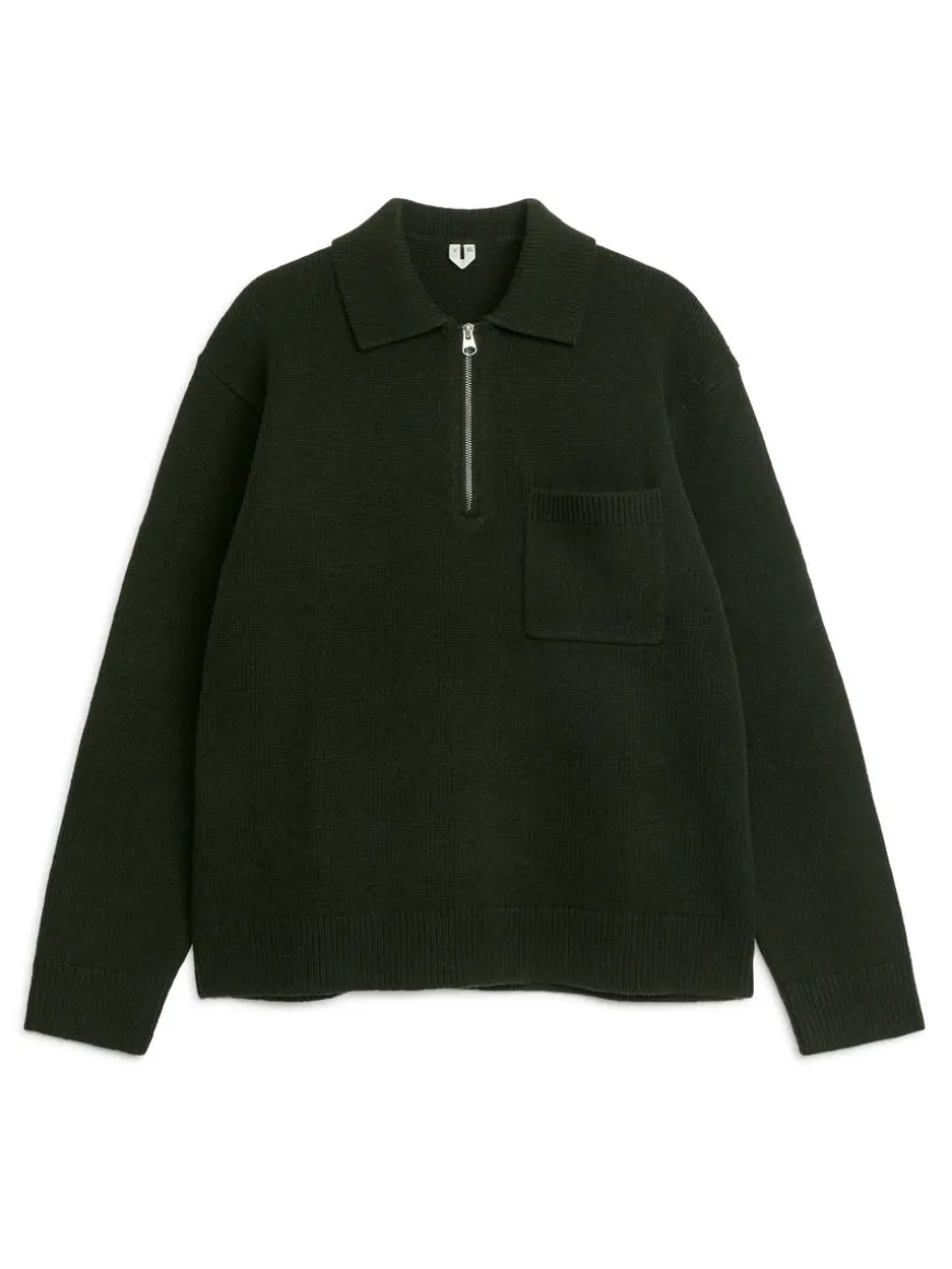 Knitted Wool Zip Polo Shirt