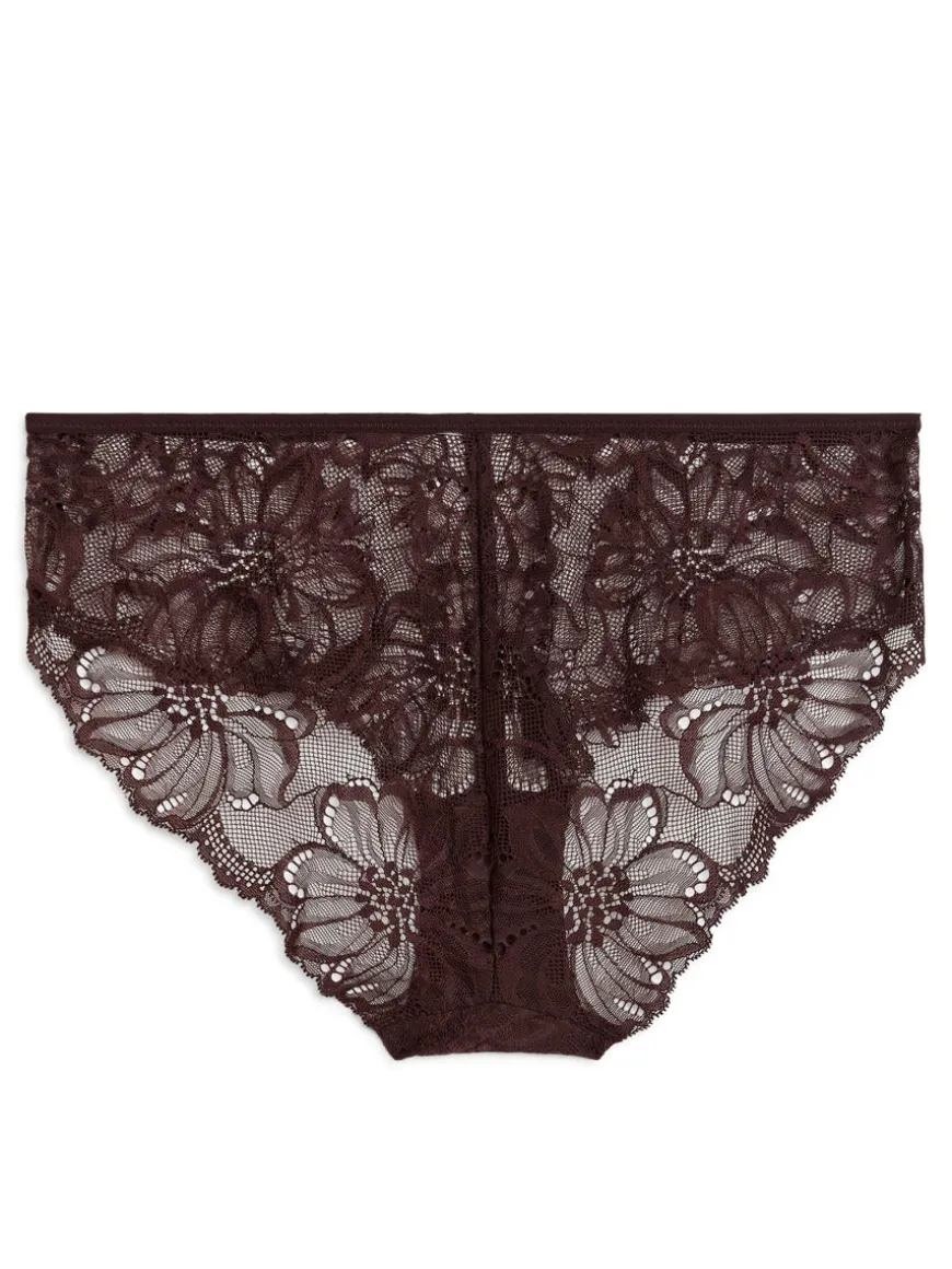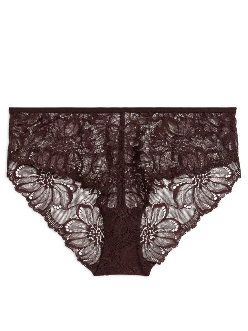 Crafted from an intricate floral lace, these regular waist hipsters offer a semi sheer coverage.