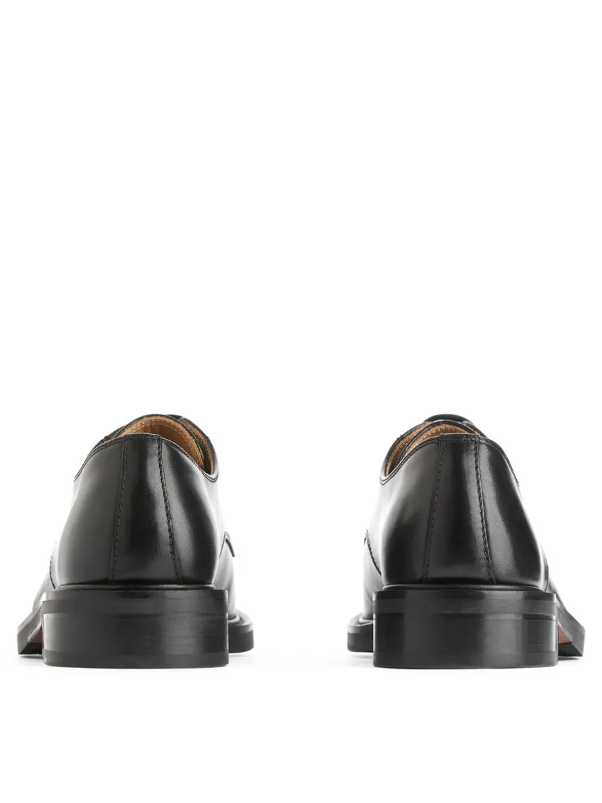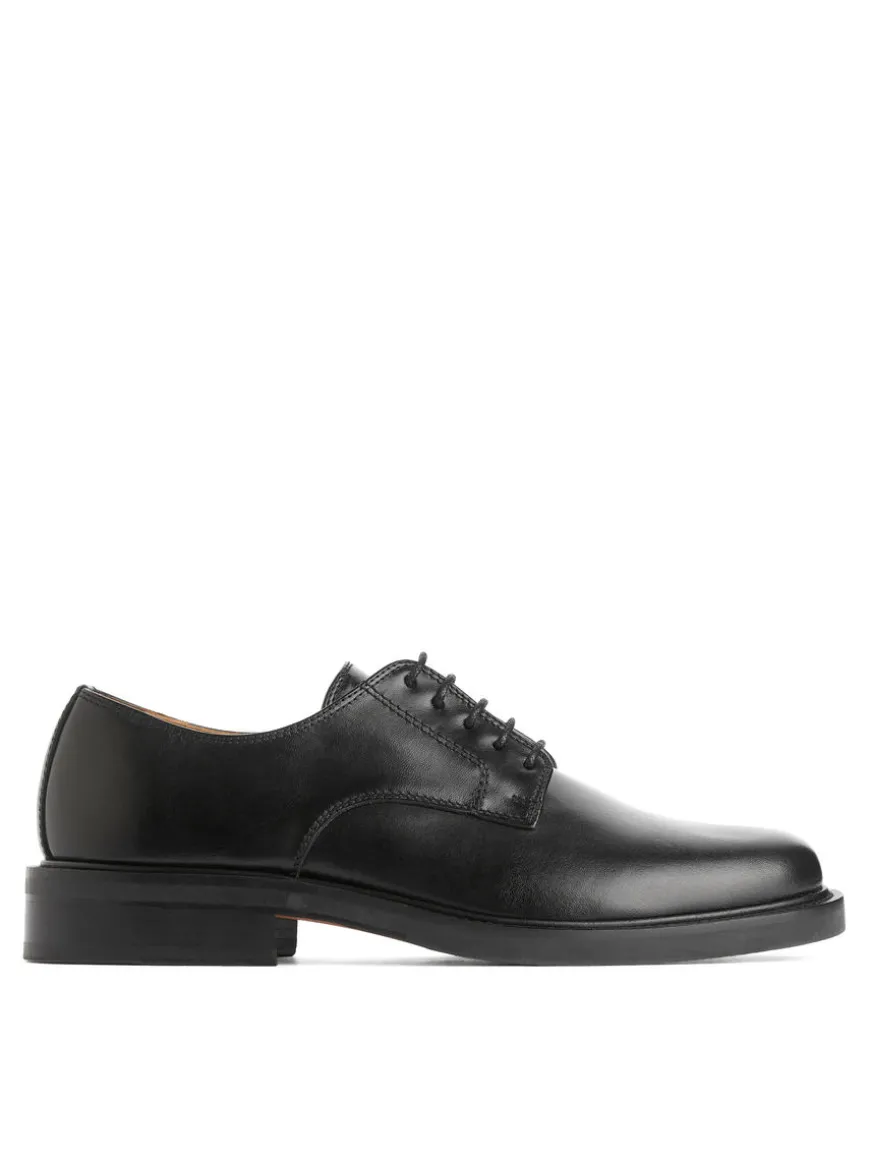 Classic derby shoes with a welted leather outsole, five eyelets and a leather-stacked heel. Leather lining and waxed cotton laces.