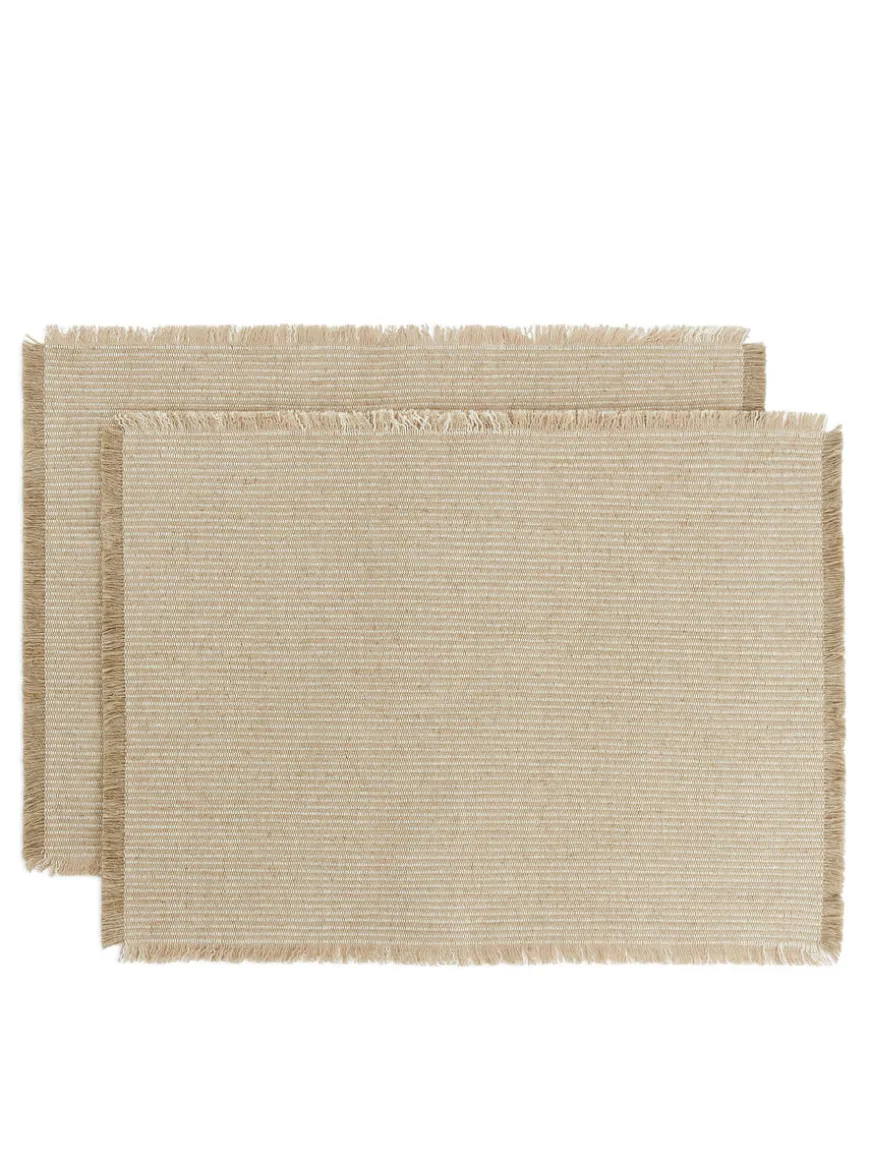 Placemat crafted from a blend of linen and cotton. Frayed edges. Size 48 x 35 cm. Set of 2.