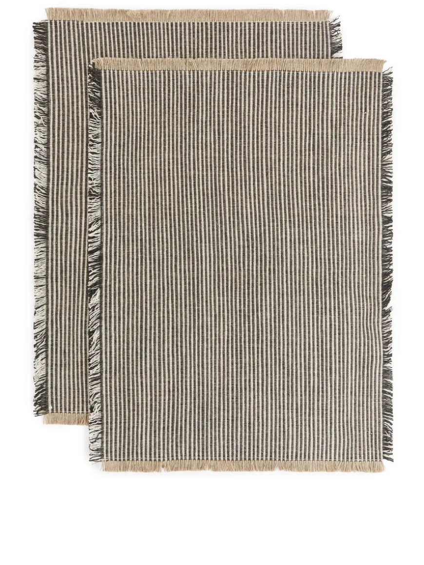 Placemat crafted from a blend of linen and cotton. Frayed edges. Size 48 x 35 cm. Set of 2.