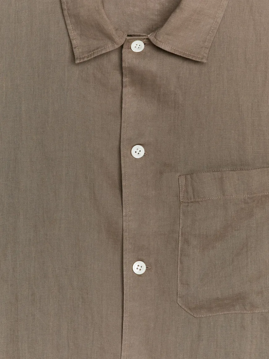 Cut for a comfortably loose fit, this short-sleeve shirt is crafted from a light-weight, breathable linen weave. Styled with a resort collar, front buttoning and a single chest pocket.