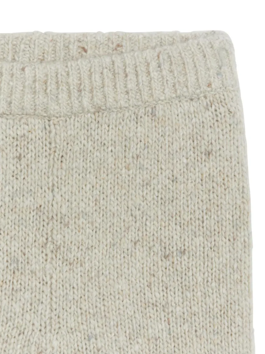 Trousers with a neps structure knitted from a wool blend with a portion of alpaca for extra cosiness. Cut for a comfortably loose fit, they are detailed with rib-knitted trimmings and adjustable elastics at waist. This style contains 65% RWS wool, certified by control union CU862581. Products certified to the Responsible Wool Standard (RWS) contain wool fiber from farms independently certified to animal welfare and land management requirements.