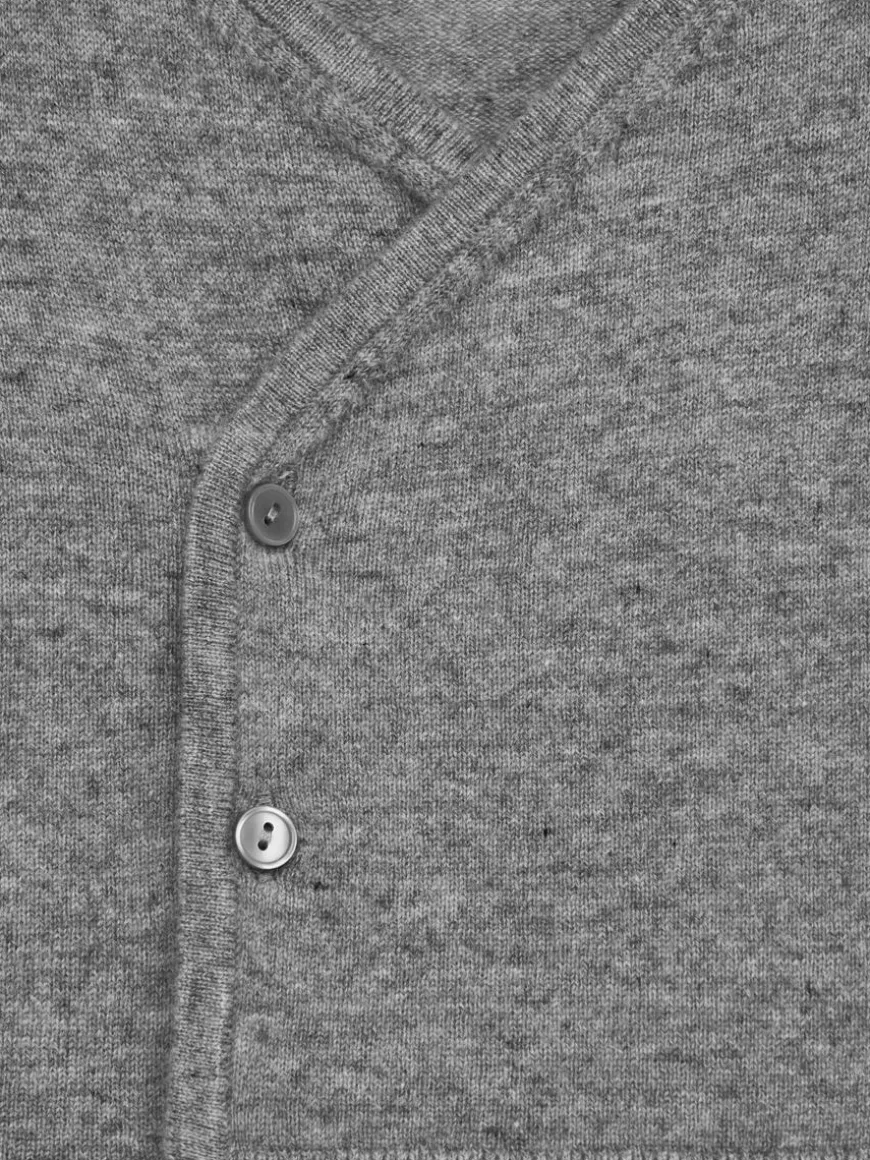 Wrap cardigan plain-knitted from a super soft cashmere. A V-neck style with two buttons at front and ribbed edges. Regular fit.