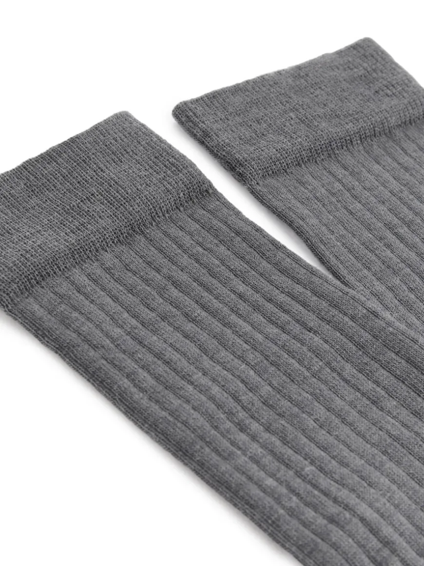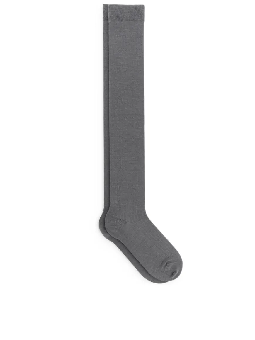 Ribbed over-the-knee socks crafted from a wool blend. The socks contain 60% RWS wool, certified by control union 822940. Products certified to the Responsible Wool Standard (RWS) contain wool fiber from farms independently certified to animal welfare and land management requirements.