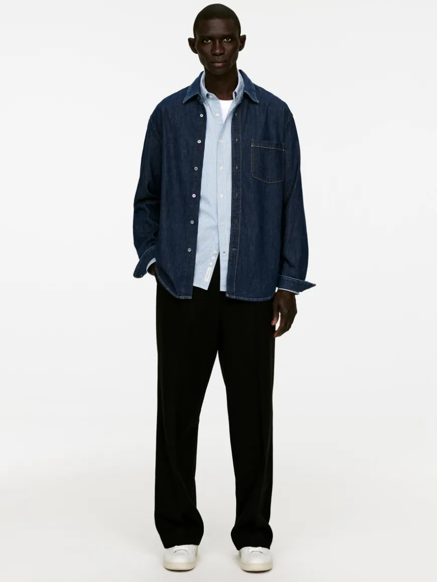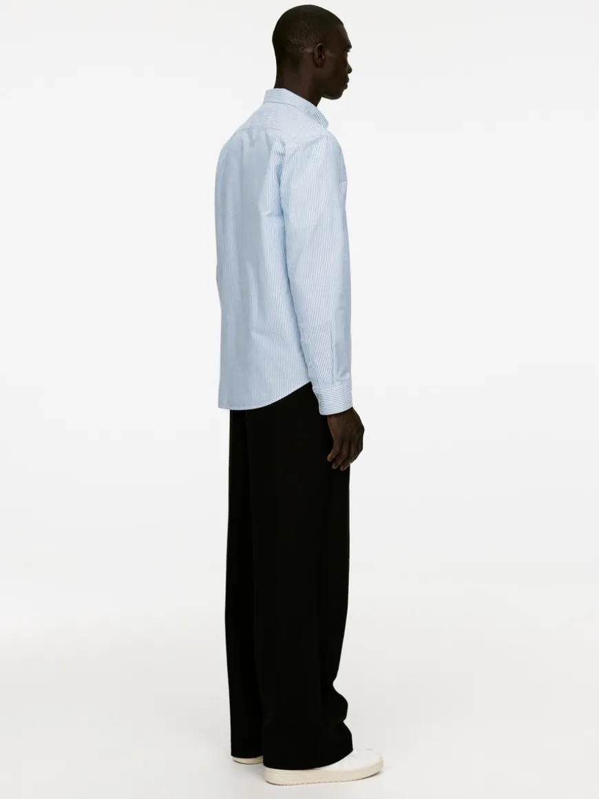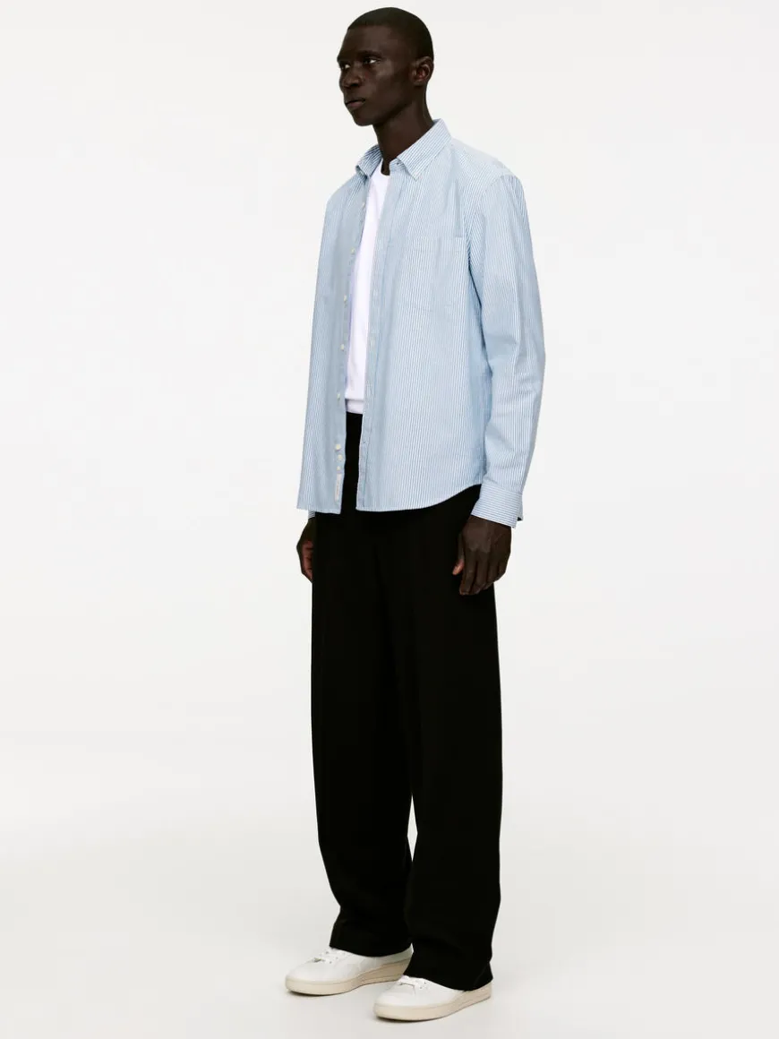 This shirt is one of ARKET’s archetypical designs, a regular-fit shirt with a button-down collar. This iteration is sewn from an Oxford weave. A casual style with a regular front placket and a chest pocket. Rounded hemline.
