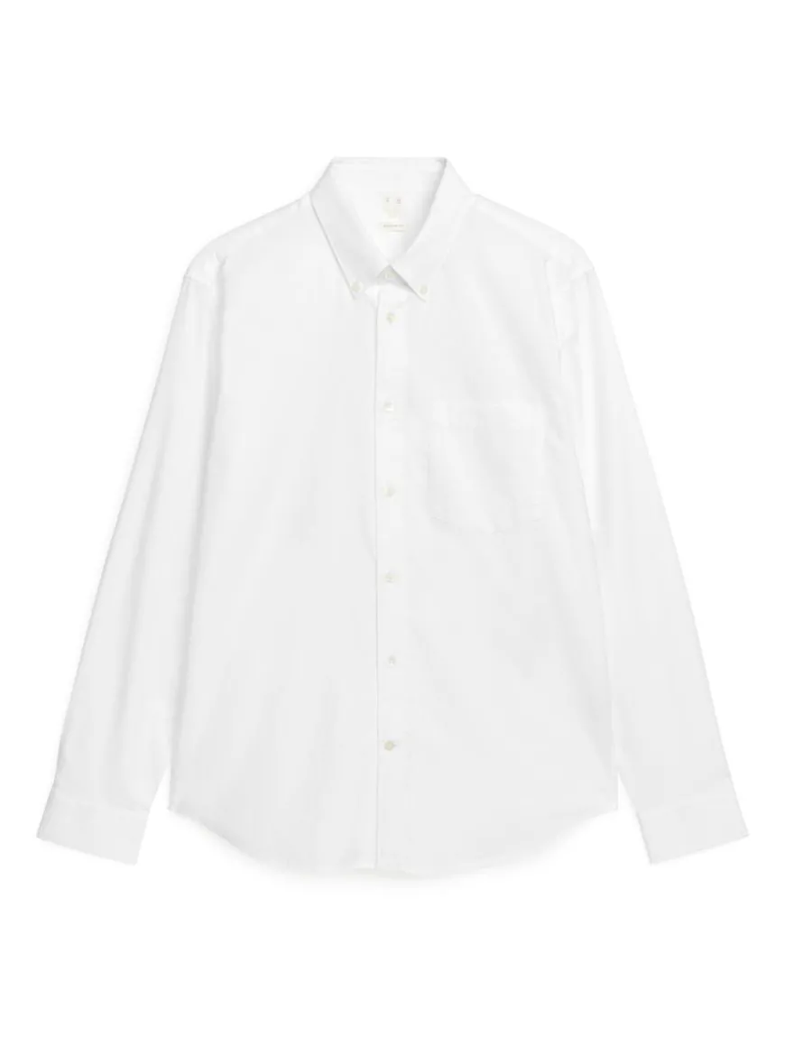 This shirt is one of ARKET’s archetypical designs, a regular-fit shirt with a button-down collar. This iteration is sewn from an Oxford weave. A casual style with a regular front placket and a chest pocket. Rounded hemline.
