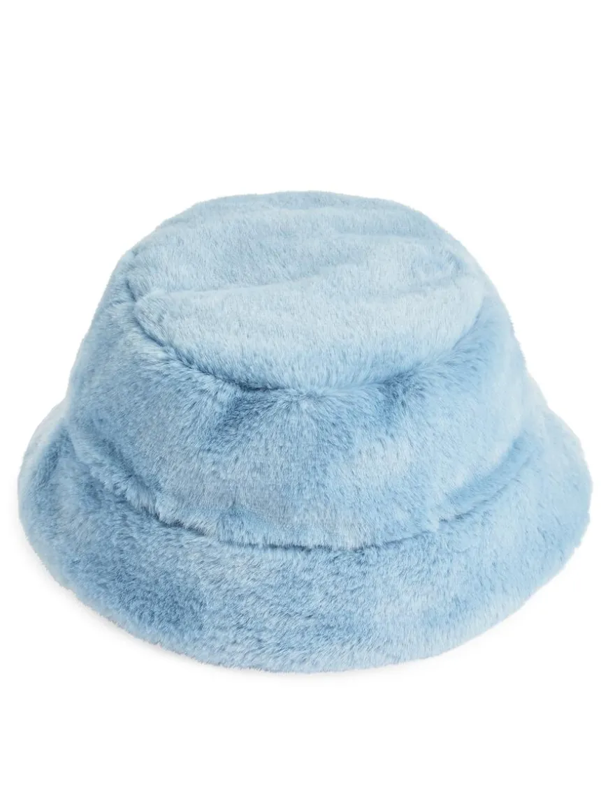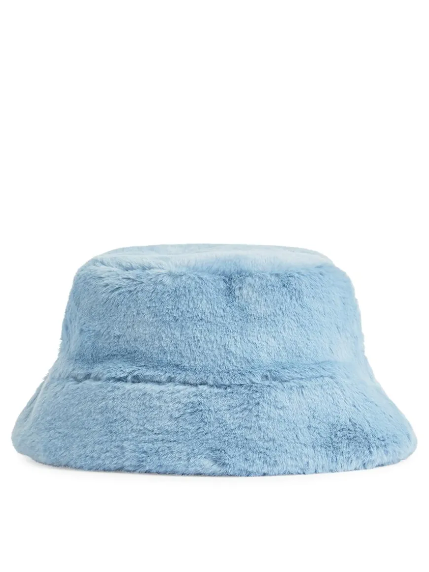 Soft and warming bucket hat in fuzzy pile. A fun accessory for cooler weather that adds texture and a splash of colour to the look.
