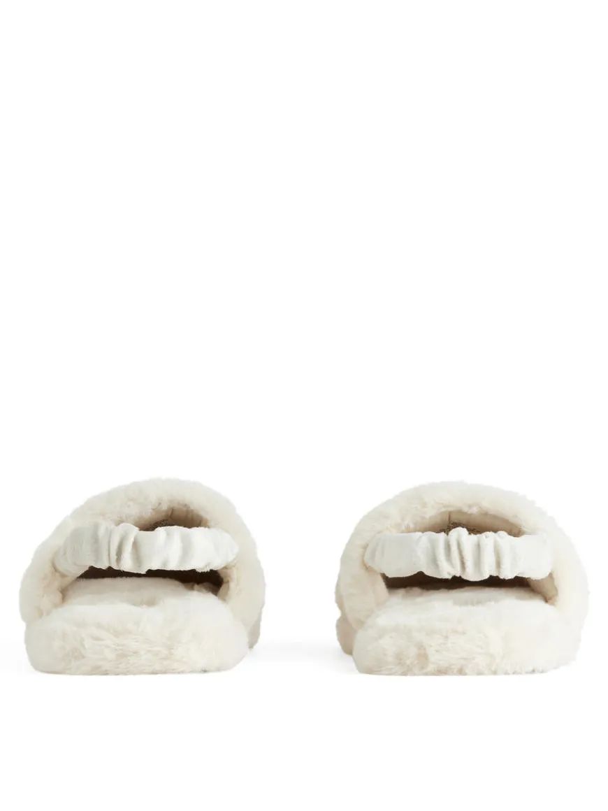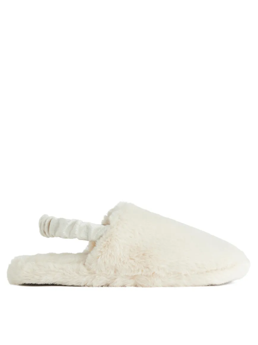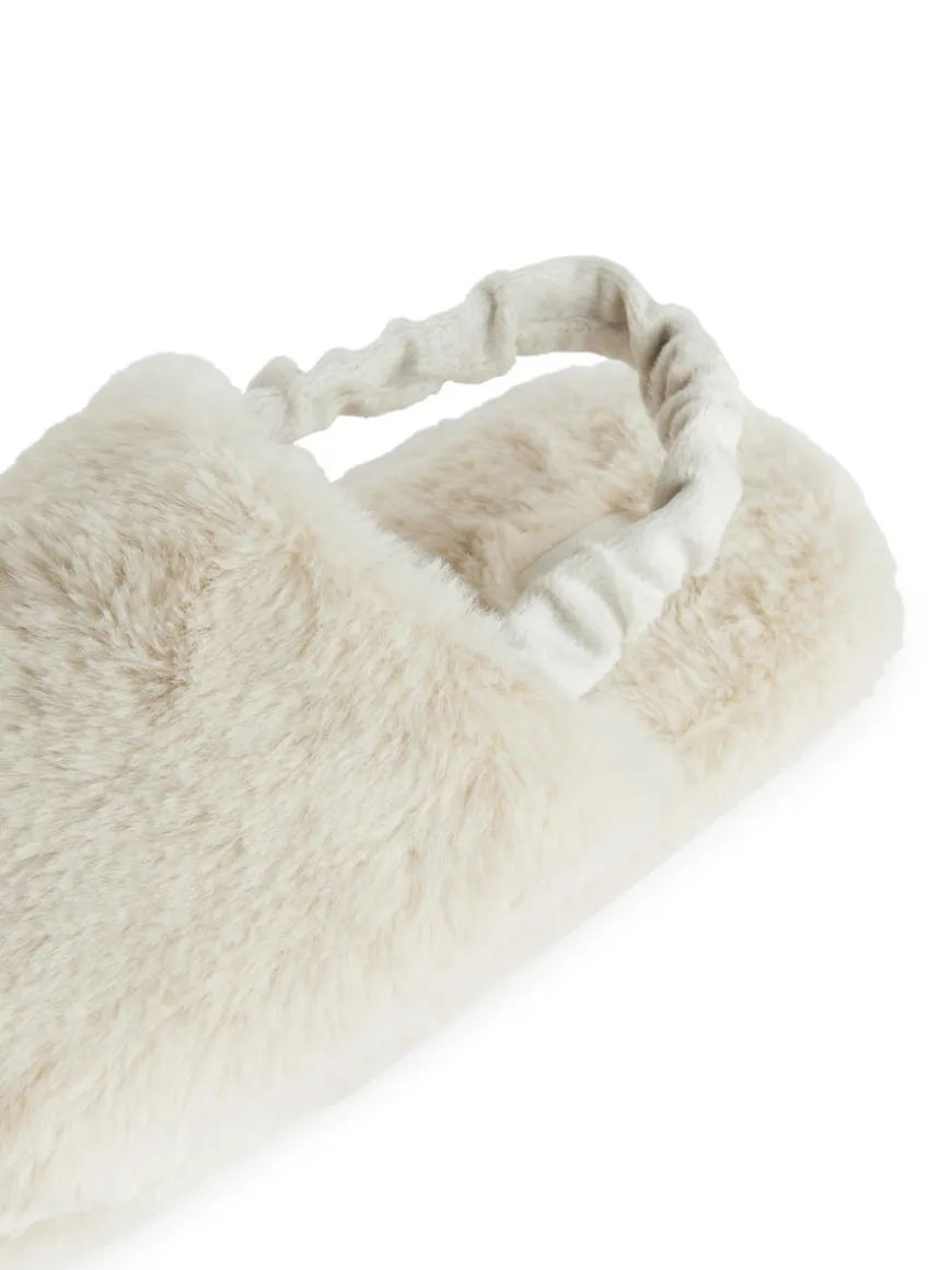 Cosy pile sippers detailed with a soft sole and a strap at heel. This style runs a bit large in size, please consider buying a size smaller than usual.