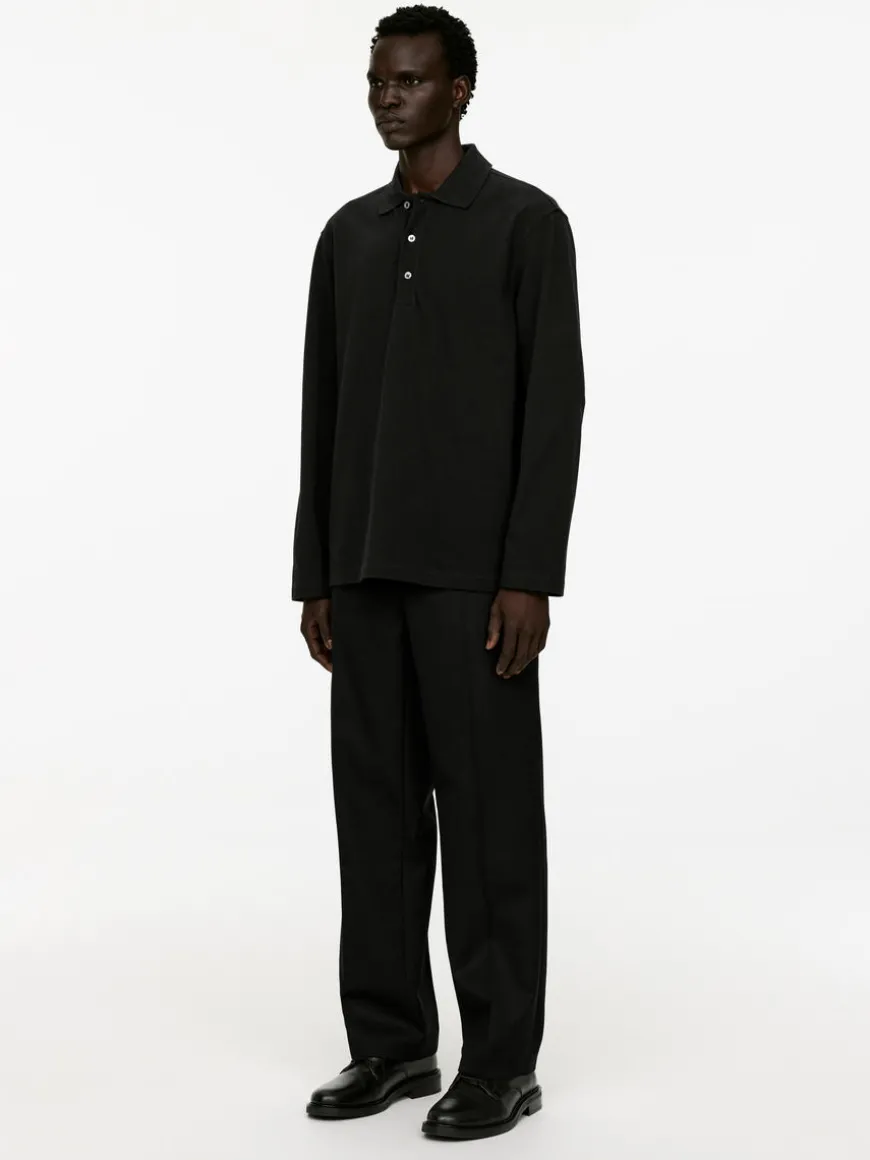 Long-sleeved polo shirt crafted from a cotton jersey. Styled with a buttoned half-placket and a regular fit.