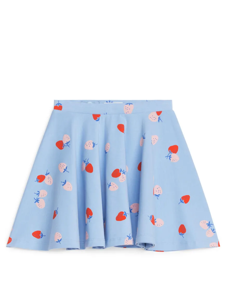 Flowy skirt cut from a soft jersey fabric with a slight stretch and an all over print. Adjustable elastics at waist.